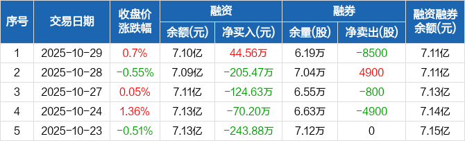 航锦科技:融资净买入44.56万元,融资余额7.1亿元(10-29)