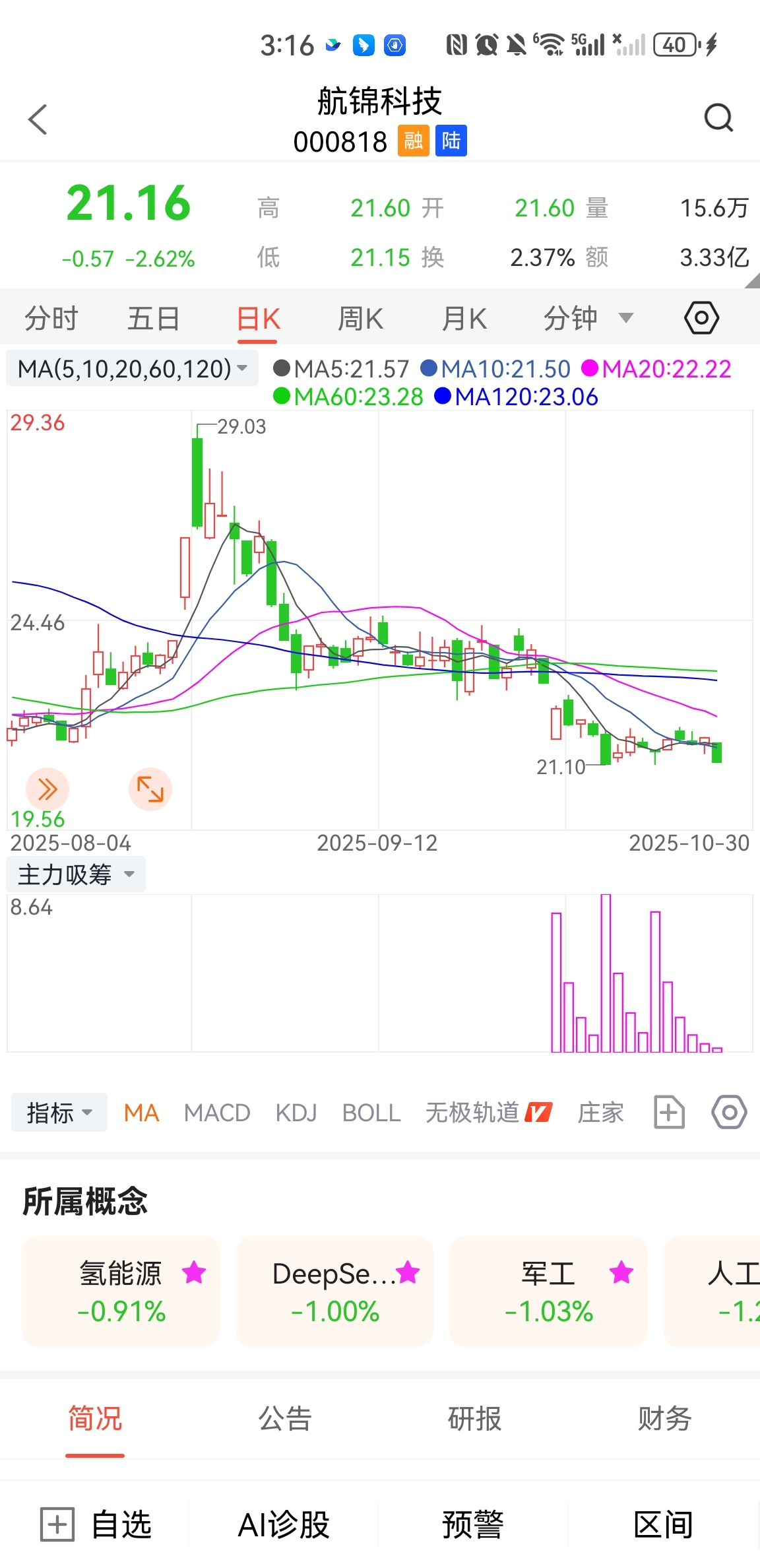 $航锦科技(SZ000818)$ 主力在捡雪馒头