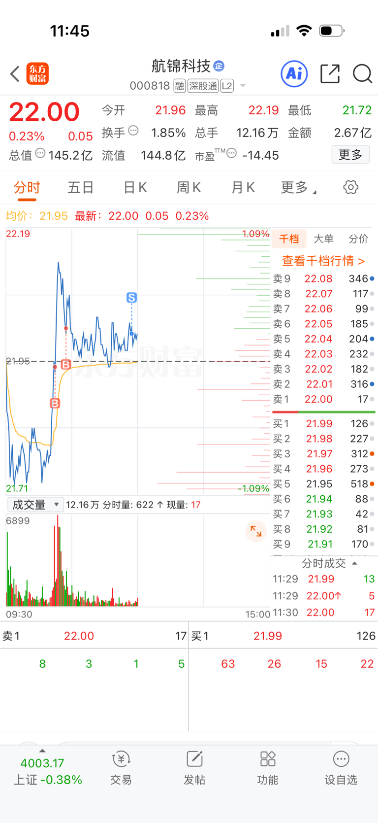 $航锦科技(SZ000818)$ 早上看到每日猛冲,还以为ds有什么利好,赶紧加仓航锦,看起来被骗了,加仓的先出来了。