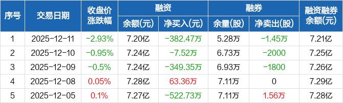 航锦科技:连续3日融资净偿还累计739.33万元(12-11)