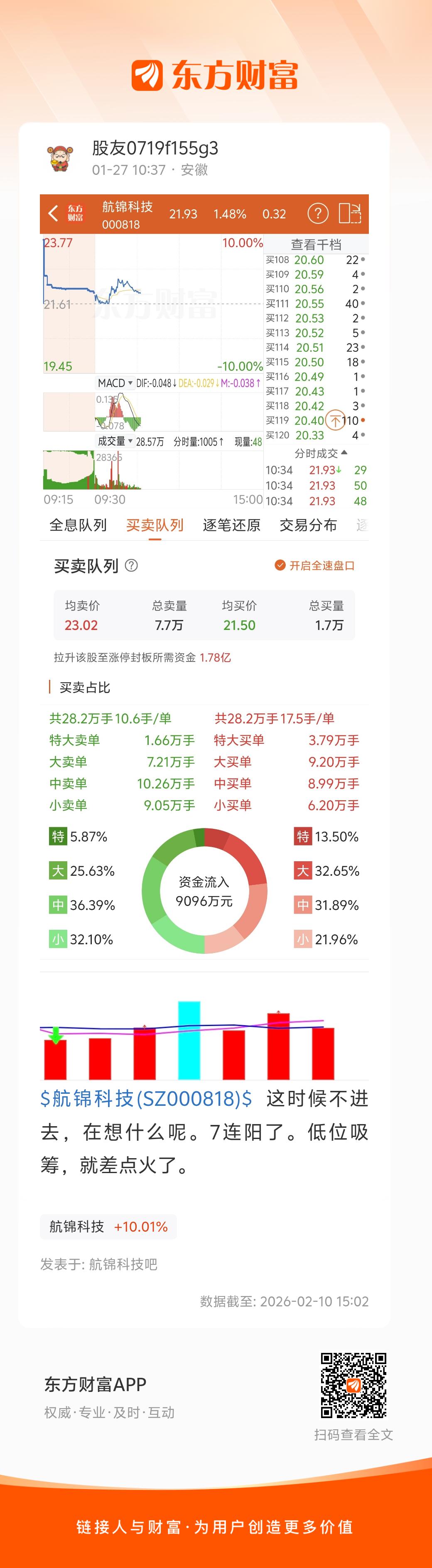 $航锦科技(SZ000818)$  这时候不进去,在想什么呢。7连阳了。低位吸筹,就差点火了。