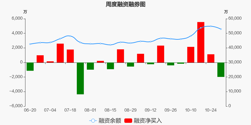 岳阳兴长本周(2025/10/27-2025/10/31)累计跌幅达5.04%,截至10月31日最新股价报收18.07元。从增量上来看,10月27日至10月30日融资买入交易规模1.86亿元,融资偿还规模2.06亿元,期内融资净偿还1975.79万元。从存量上来看,截止11月2日,岳阳兴长融资融券余额5.29亿元,其中融资余额规模5.29亿元,融券余额规模0元。