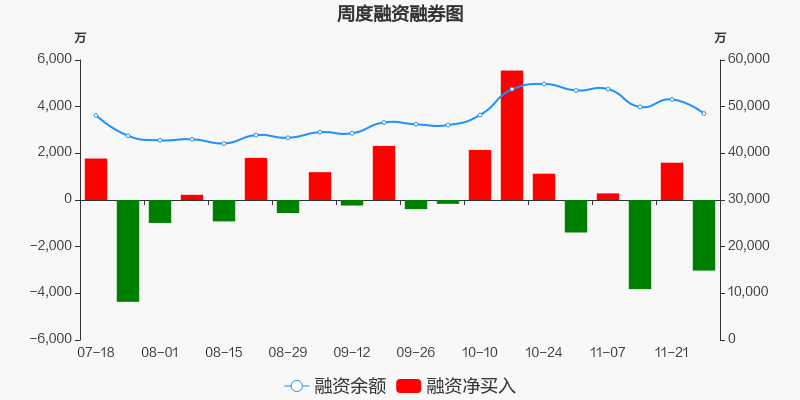 岳阳兴长本周(2025/11/24-2025/11/28)累计涨幅达2.06%,截至11月28日最新股价报收17.37元。从增量上来看,11月24日至11月27日融资买入交易规模6207万元,融资偿还规模9231.69万元,期内融资净偿还3024.69万元。从存量上来看,截止11月30日,岳阳兴长融资融券余额4.85亿元,其中融资余额规模4.85亿元,融券余额规模0元。