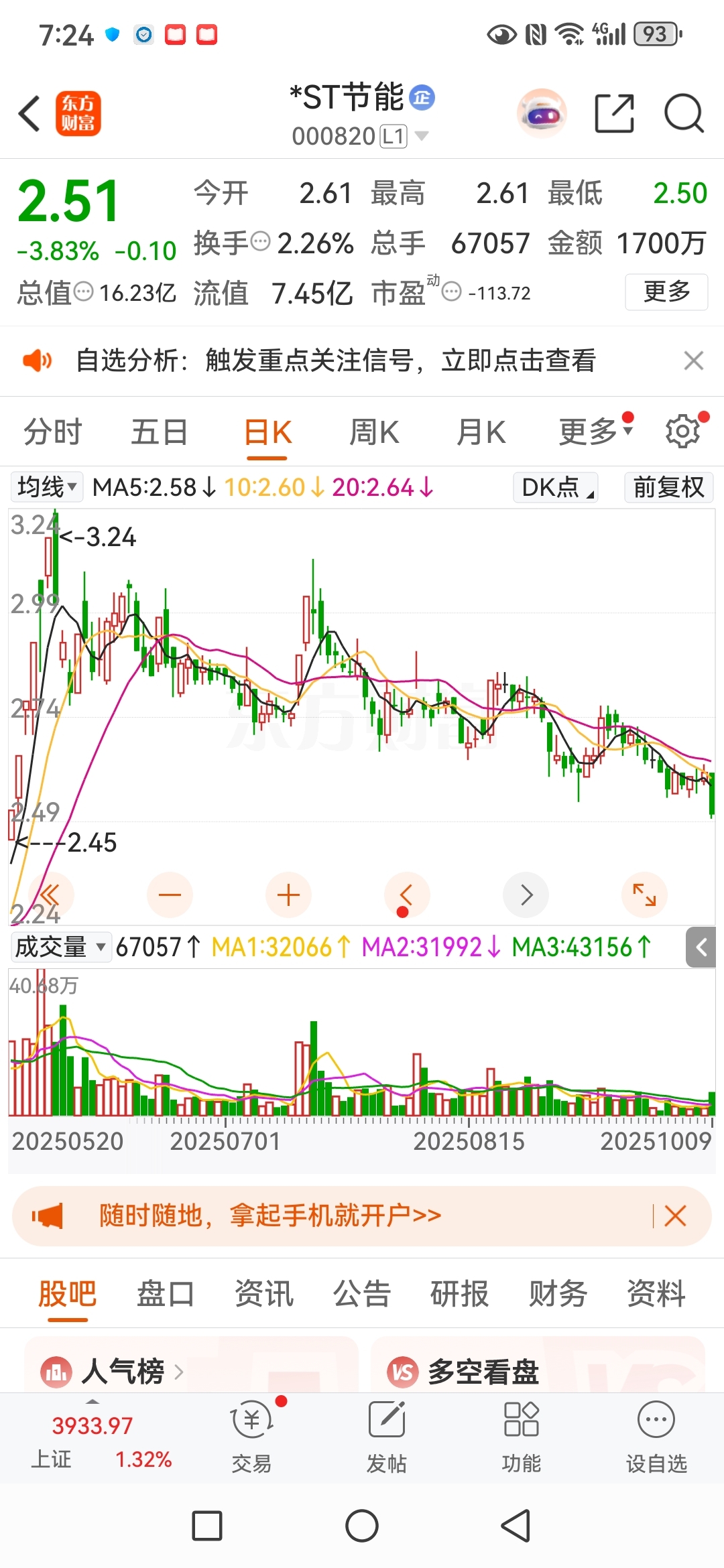 $*ST节能(SZ000820)$ K线走成这样也有人敢唱多,不怕挨揍吗?