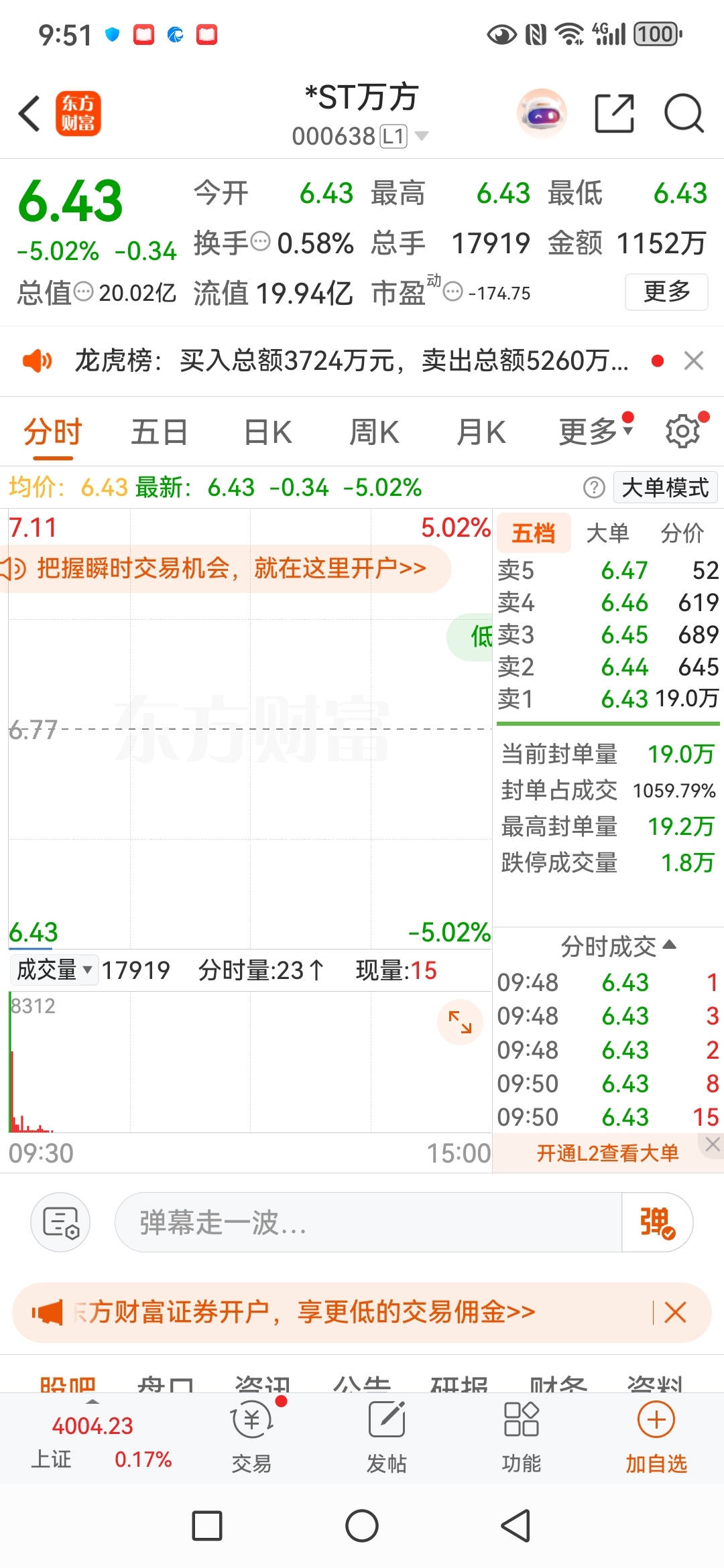 万方又跌停了,摘帽就买戴帽就卖,摘帽再进来也不迟,如海峡创新,同洲电子,现在进去
