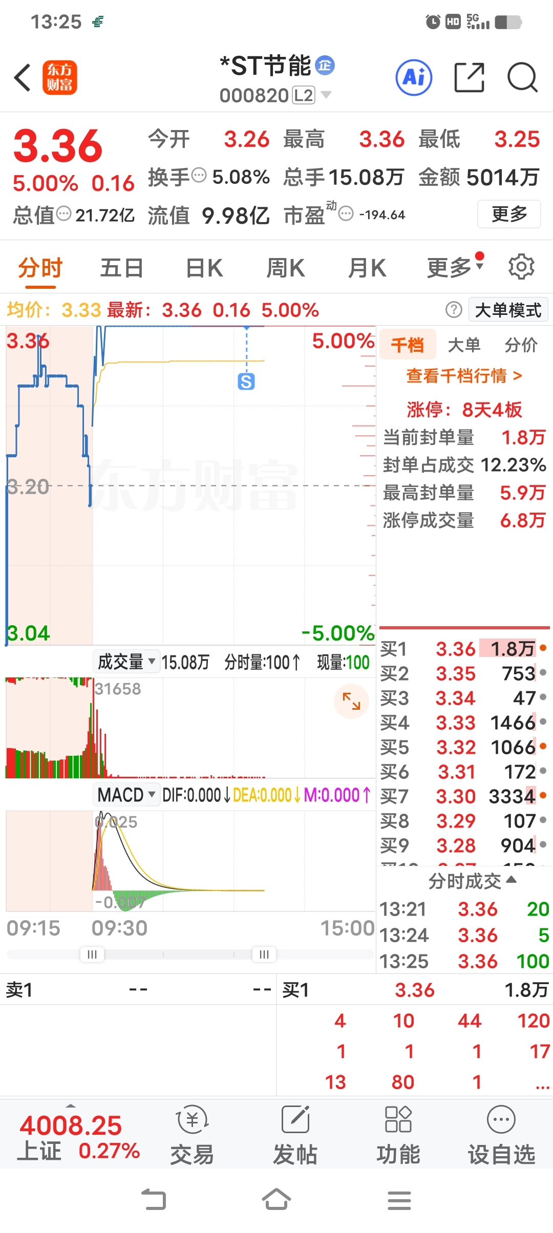 $*ST节能(SZ000820)$ 第一玩ST想问一下这样都能卖出吗?不是封死涨停了吗,还我筹码
