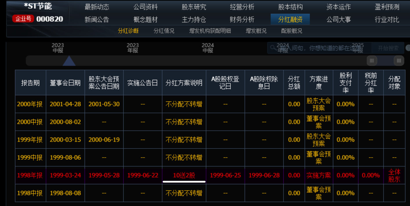 从技术上讲,股票上市28年转送股仅为10送8,又都发生在创历史高44.98元之前,这意味*ST节能只要不退市,目前的3.35元股价将发生大A罕见的补涨行情!