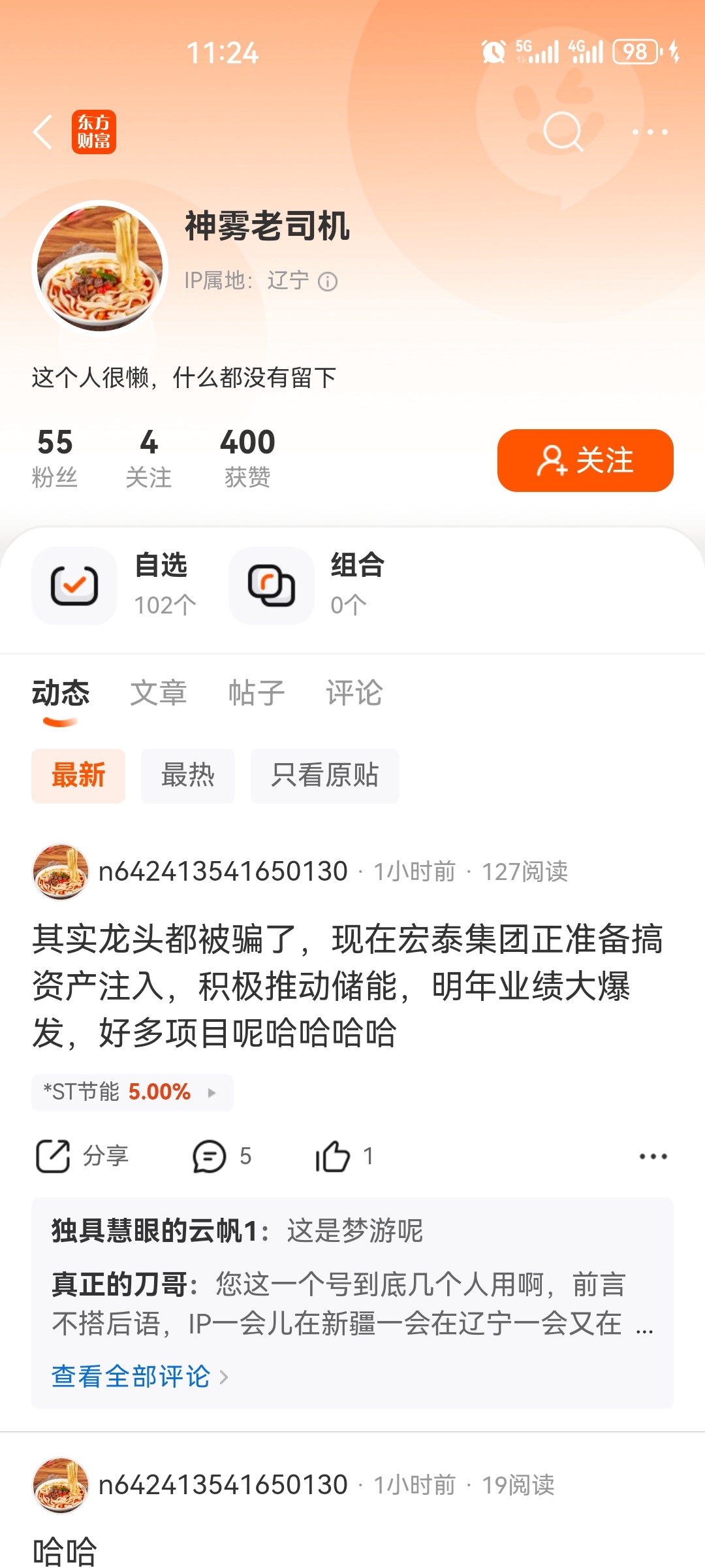 怕新来的股友不知情,这个人还是要小心提防的,之前天天喊退市,换个人名头像最近开始