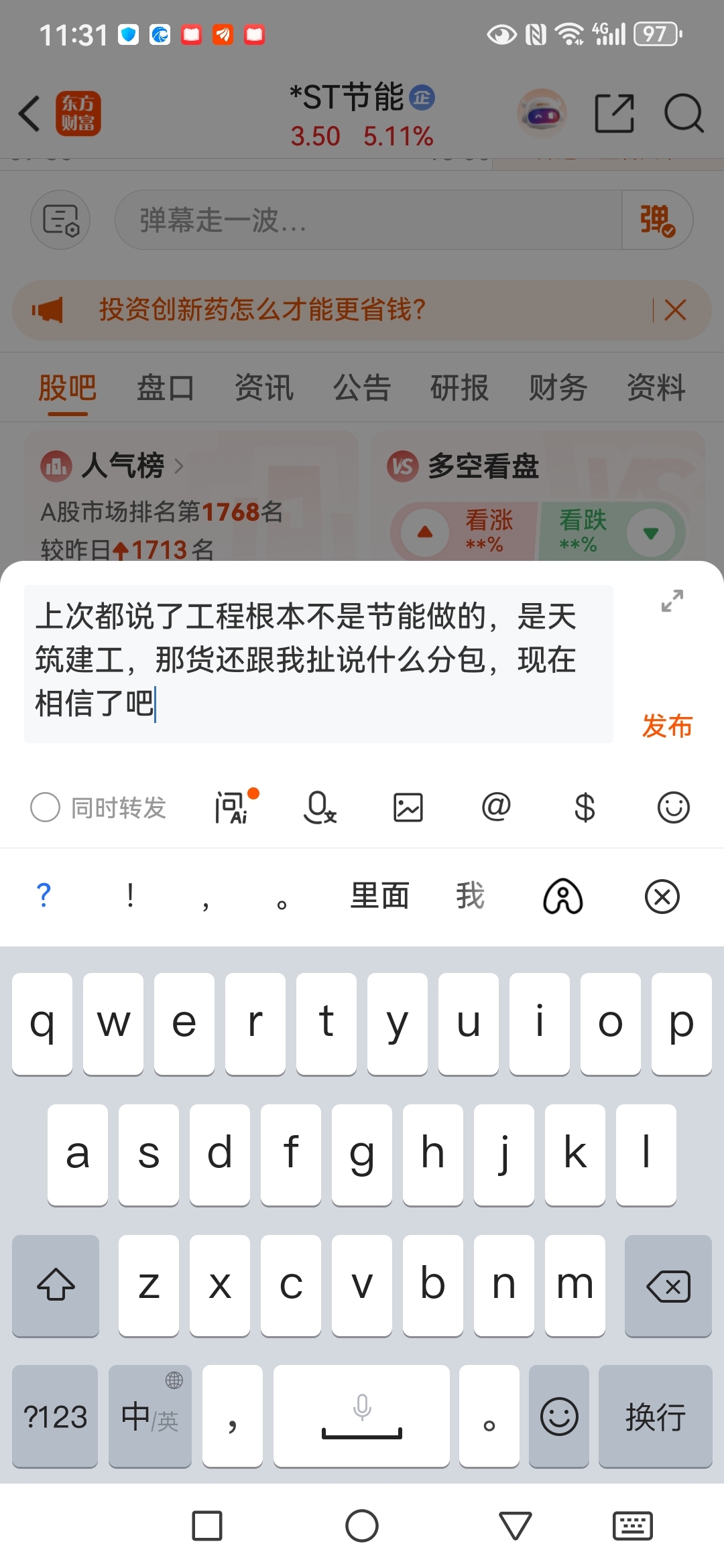 温馨提示: 1.根据《证券法》规定,禁止编造、传播虚假信息或者误导性信息,扰乱证券市场;2.用户在本社区发表的所有资料、言论等仅代表个人观点,与本网站立场无关,不对您构成任何投资建议。用户应基于自己的独立判断,自行决定证券投资并承担相应风险。《东方财富社区管理规定》