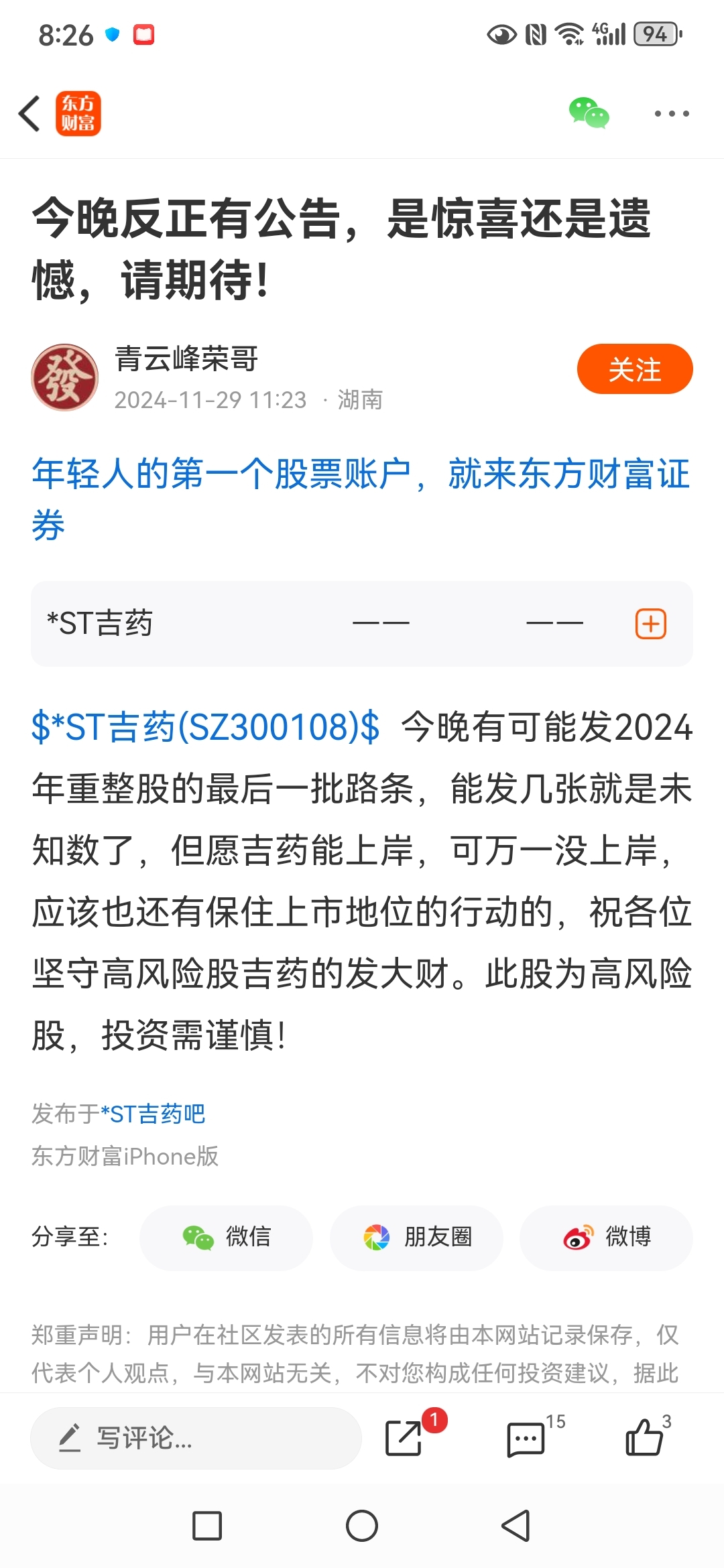 温馨提示: 1.根据《证券法》规定,禁止编造、传播虚假信息或者误导性信息,扰乱证券市场;2.用户在本社区发表的所有资料、言论等仅代表个人观点,与本网站立场无关,不对您构成任何投资建议。用户应基于自己的独立判断,自行决定证券投资并承担相应风险。《东方财富社区管理规定》