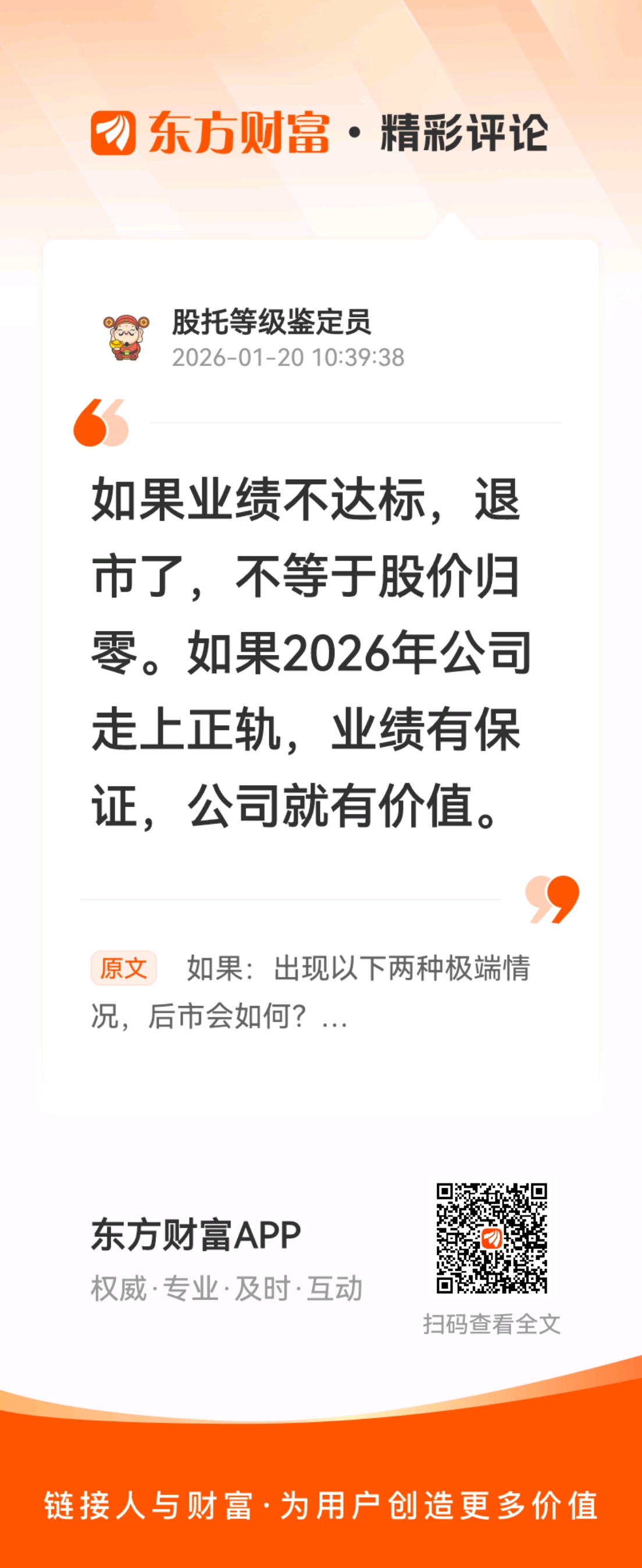 温馨提示: 1.根据《证券法》规定,禁止编造、传播虚假信息或者误导性信息,扰乱证券市场;2.用户在本社区发表的所有资料、言论等仅代表个人观点,与本网站立场无关,不对您构成任何投资建议。用户应基于自己的独立判断,自行决定证券投资并承担相应风险。《东方财富社区管理规定》