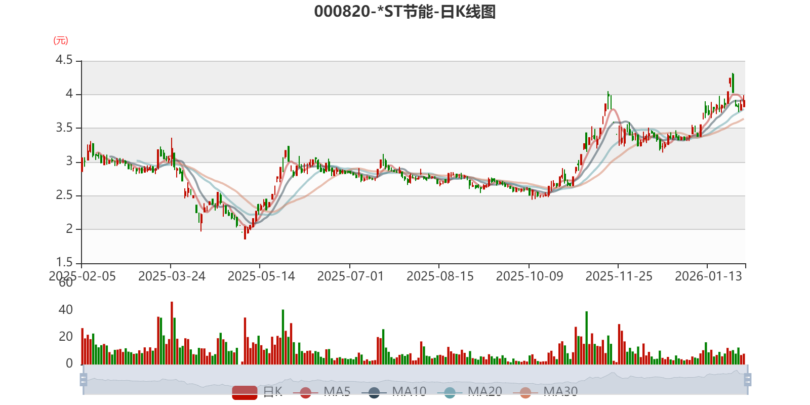 中证智能财讯 *ST节能(000820)1月30日晚间披露2025年度业绩预告,预计2025年实现营业收入3.15亿元至3.4亿元;归母净利润亏损4080万元至7920万元,上年同期亏损2212.36万元;扣非净利润亏损4680万元至9000万元,上年同期亏损2800.34万元;基本每股收益-0.0632元/股至-0.1228元/股。以最新收盘价计算,市净率(LF)约16.98倍,市销率(TTM)约7.72倍。