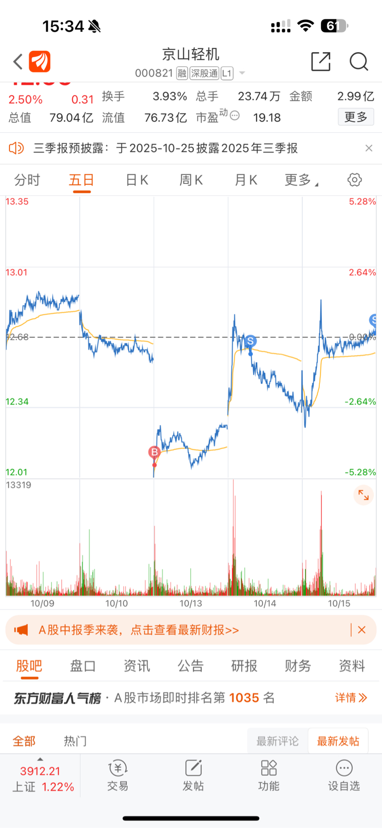 $京山轻机(SZ000821)$ 做个t,明天感觉还有低点接