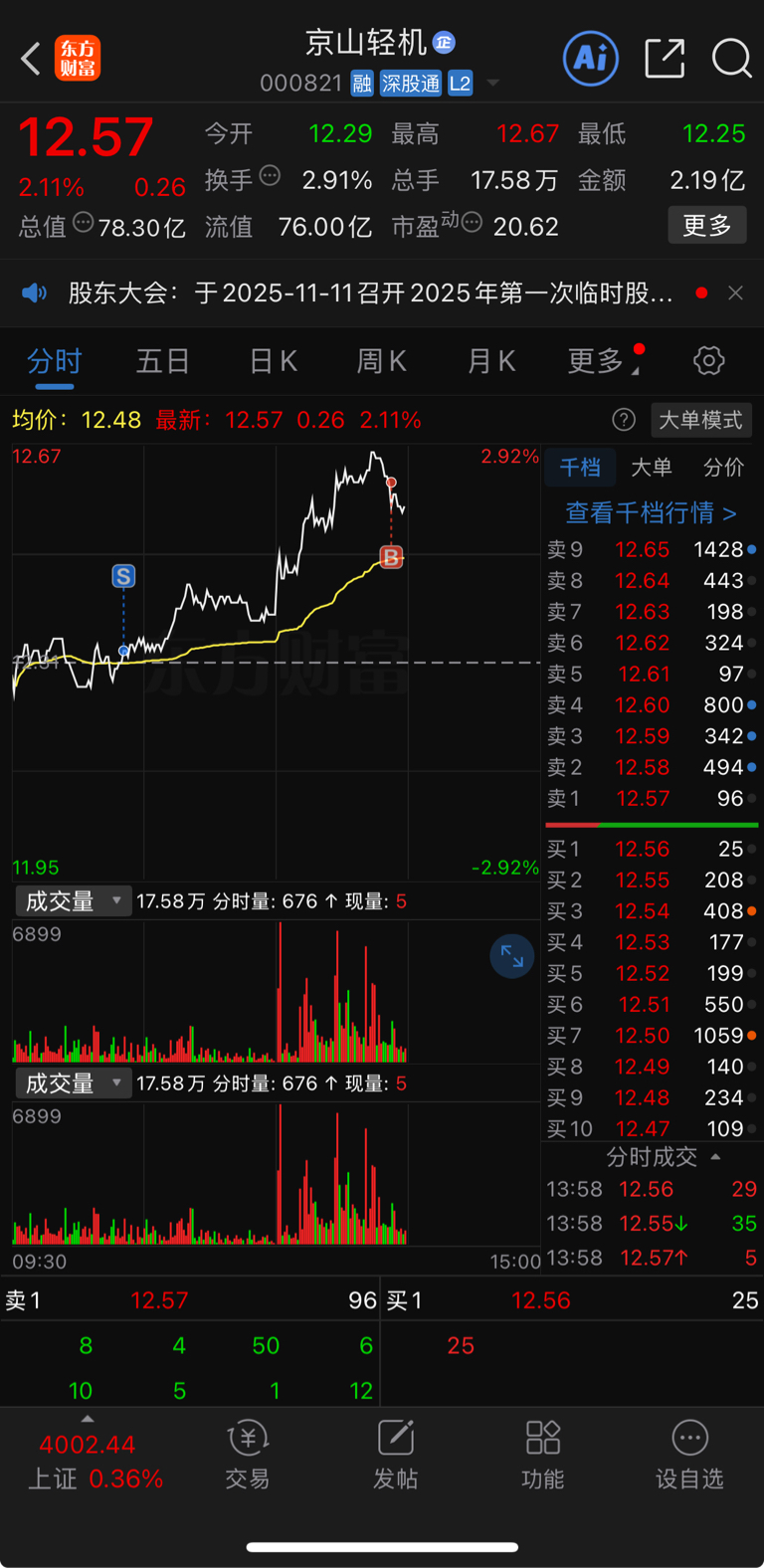 $京山轻机(SZ000821)$ 今天终于轮到我来施展SB大法了