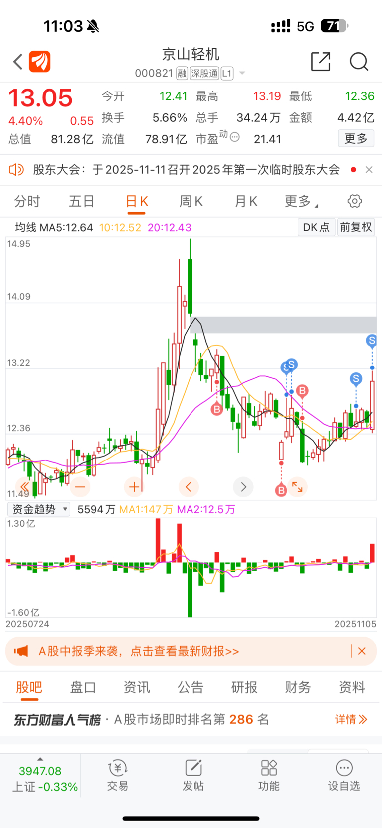 $京山轻机(SZ000821)$ 不会t飞了吧