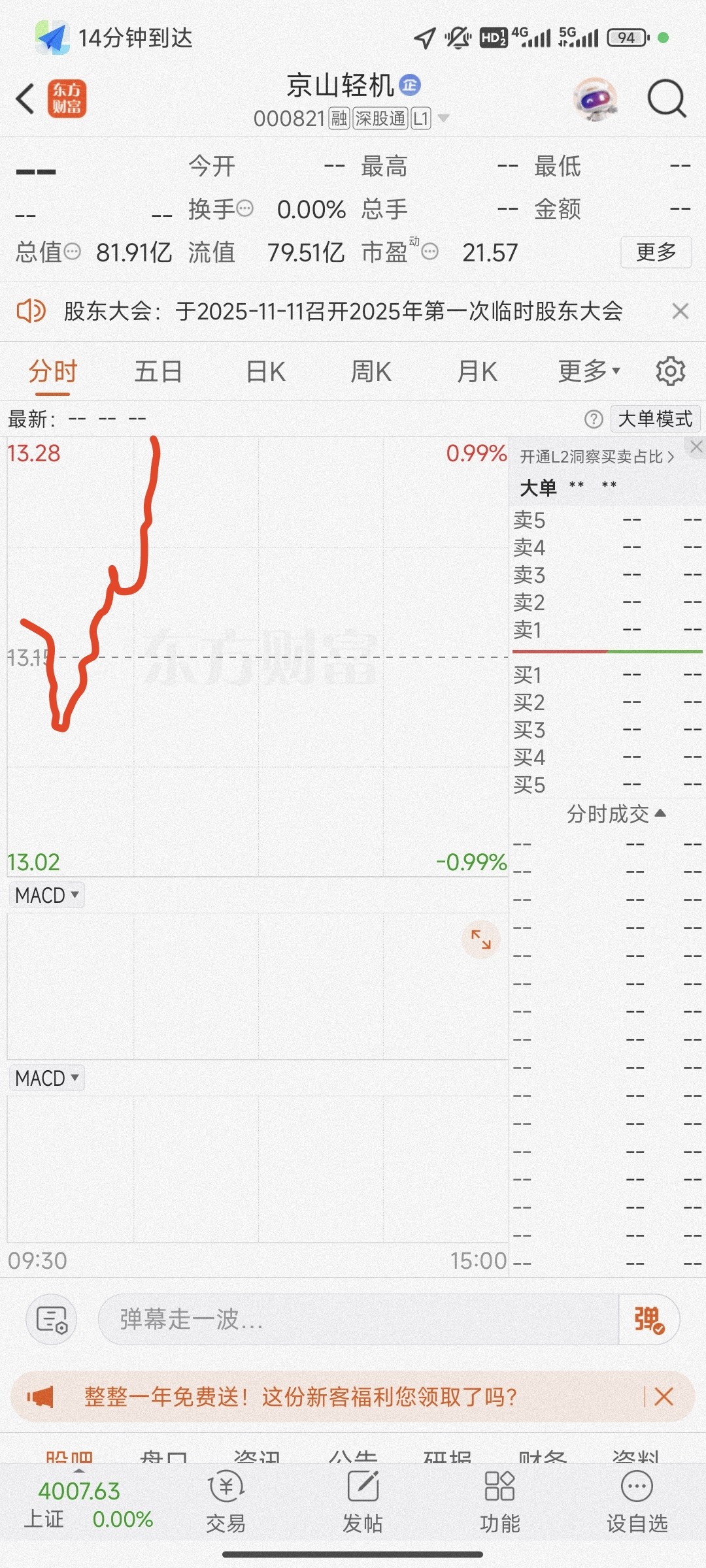$京山轻机(SZ000821)$ 不涨停也要涨五六个点吧