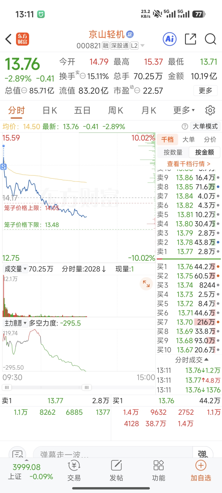 $京山轻机(SZ000821)$ 幸亏早上逃的比较及时,还能赚点,下午再看情况继续接回来
