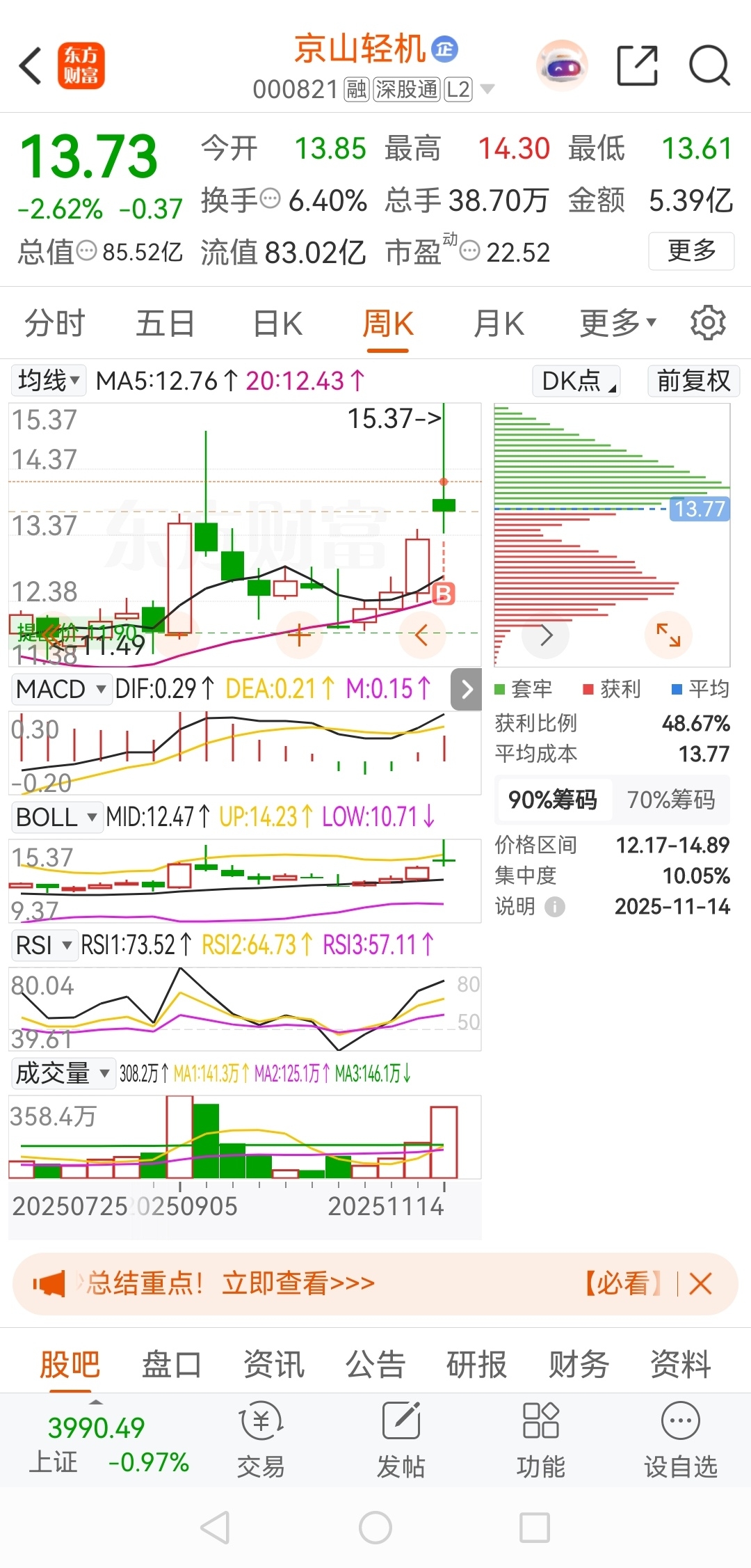 $京山轻机(SZ000821)$ 上周买在了半山腰,郁闷啊!