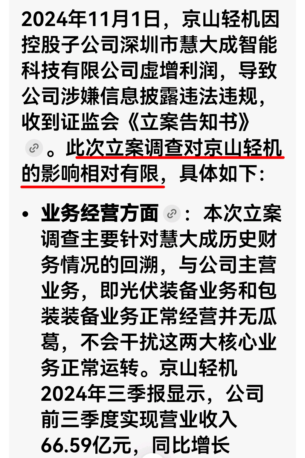 $京山轻机(SZ000821)$ 影响有限