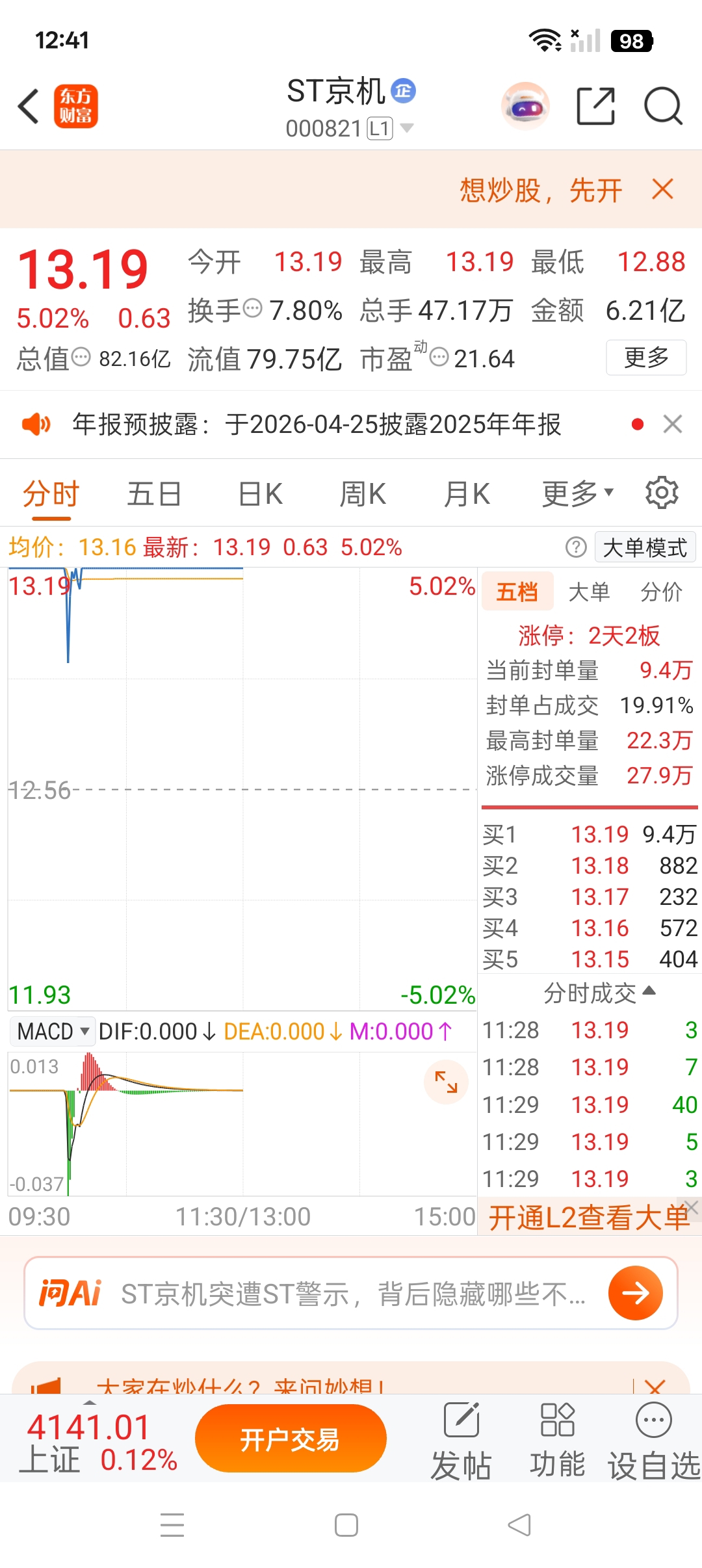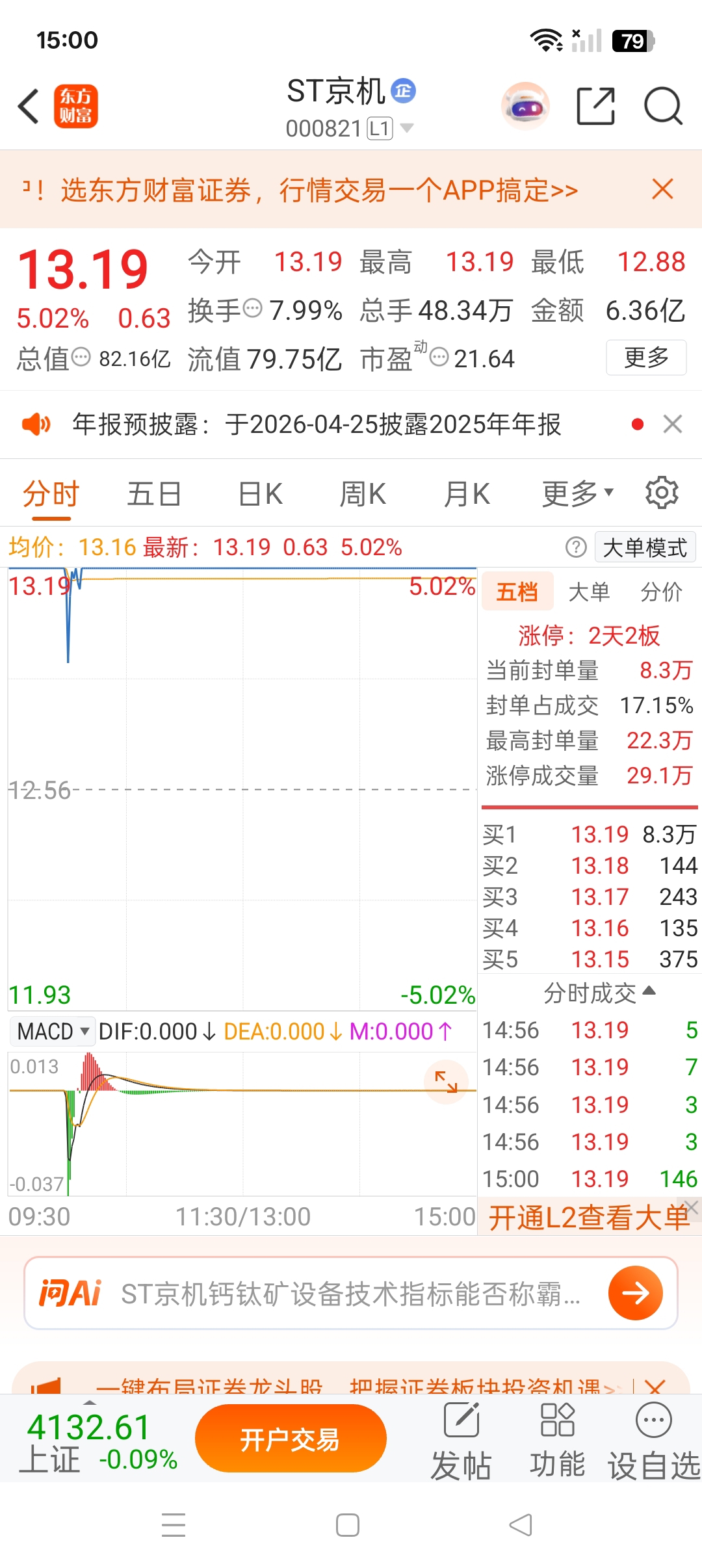 明天开盘清仓京机空仓休息观察几天再考虑