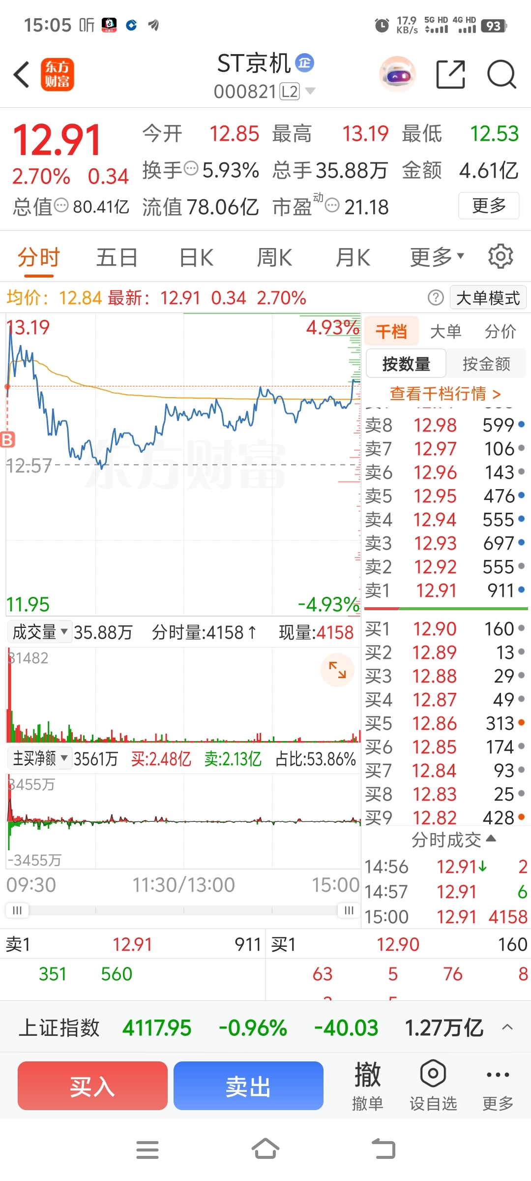 $ST京机(SZ000821)$ 又被挂山顶了