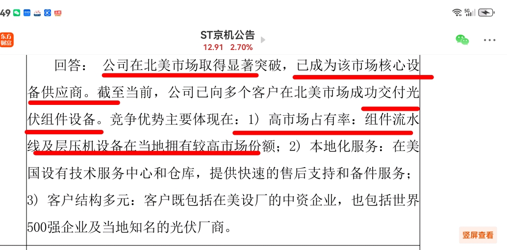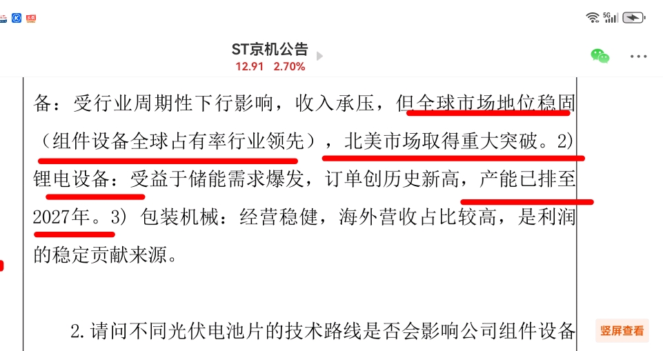 $ST京机(SZ000821)$ 破天荒!几十家机构调研ST股ST京机,炸裂!马斯克启动100GW地面光伏产能建设!黑马级信息!!!ST京机光伏组件设备市占率全球第一且通用各种光伏技术路线,最大预期差!!!北美市场取得显著突破。深藏不露!!!锂电设备供不应求!