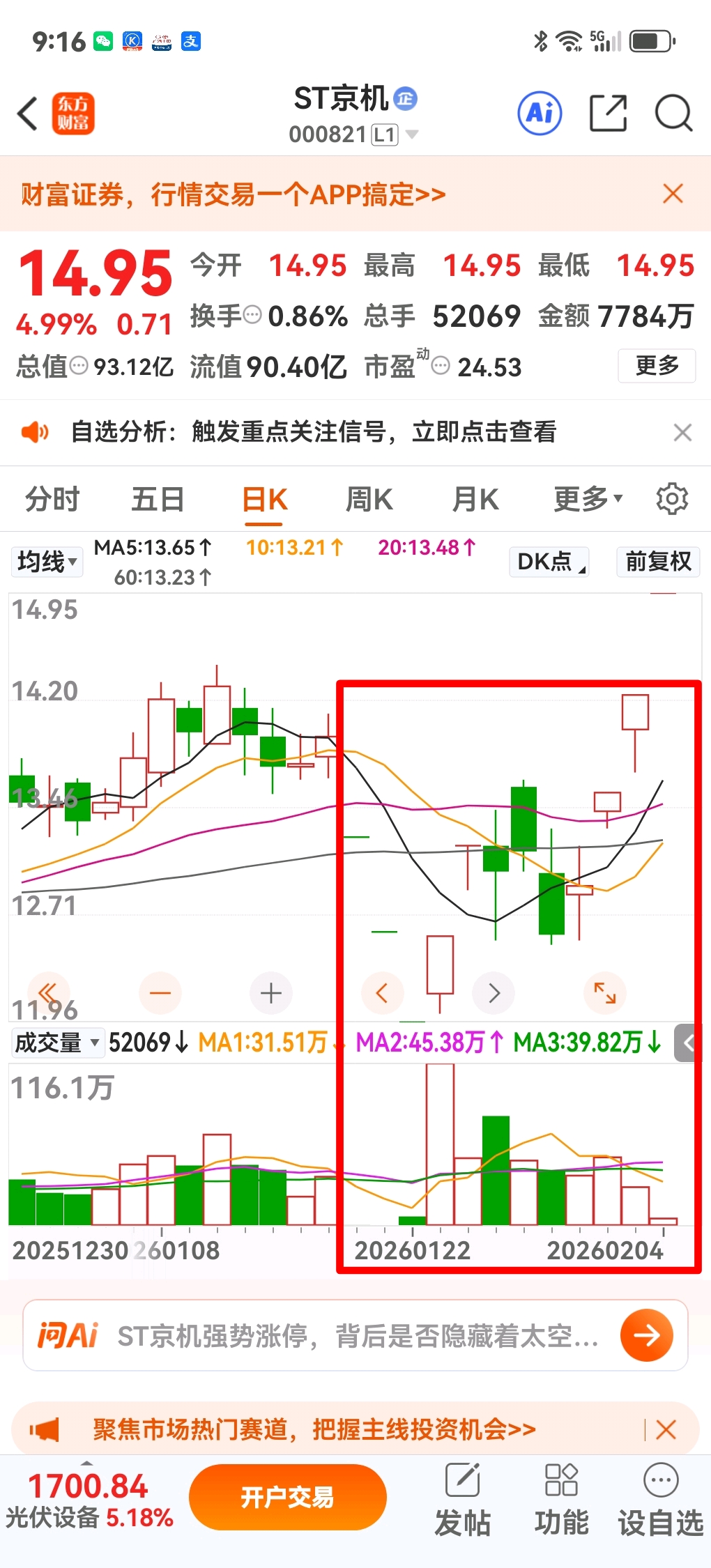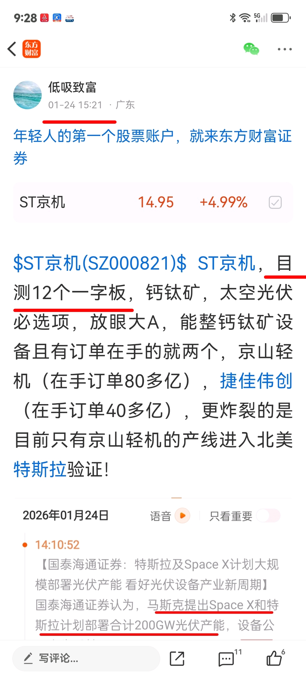 $ST京机(SZ000821)$ 想买的,早早去排板吧,明天还是巨量一字。目前在车上的散户都是死多头,不坚定的早在前8个交易日的巨震甩下车了,打开这几天的分时图看看便知,每天不是从地天板就是天地板,有谁受得了。持同样观点的请点赞支持
