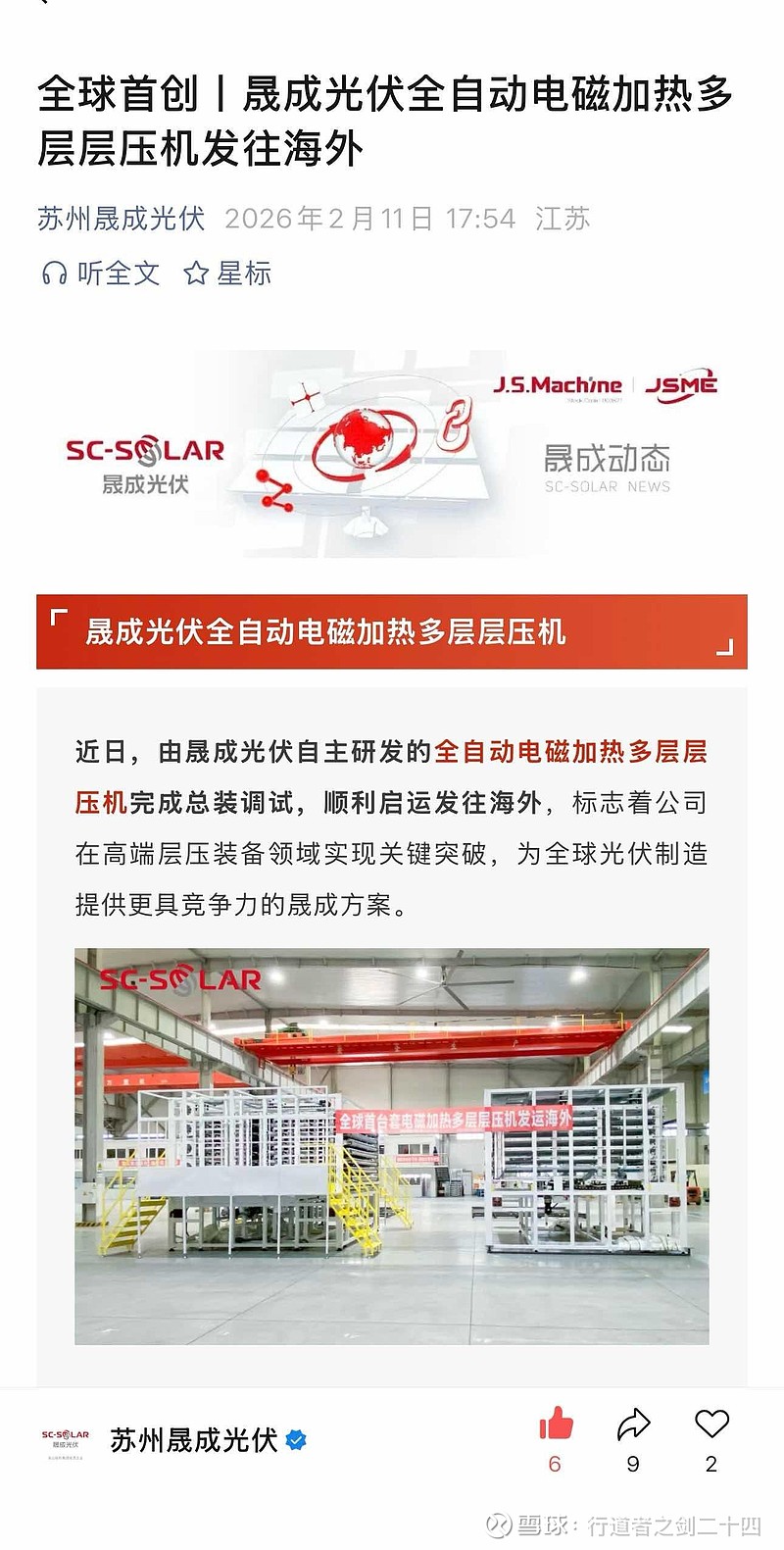 $ST京机(SZ000821)$ 全球首创丨晟成光伏全自动电磁加热多层层压机发往海外