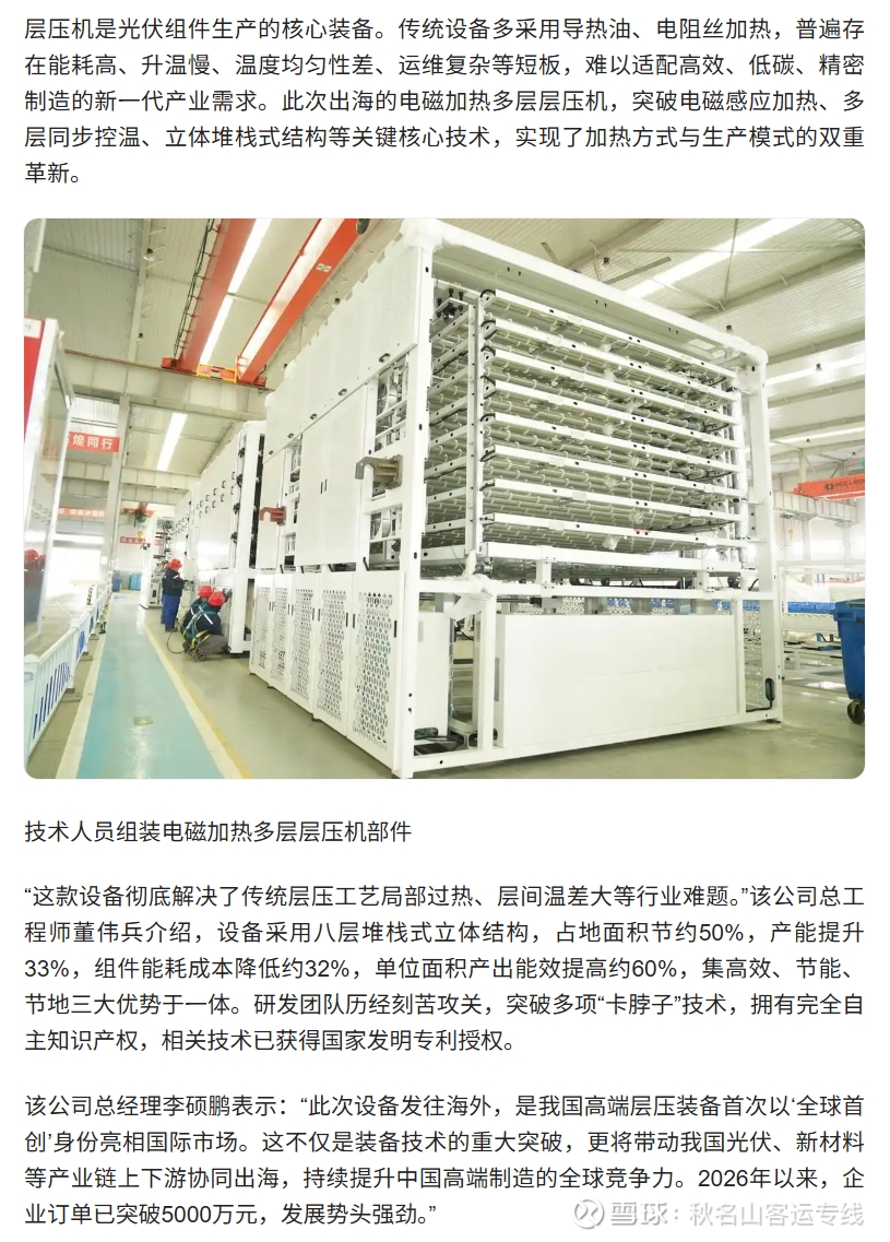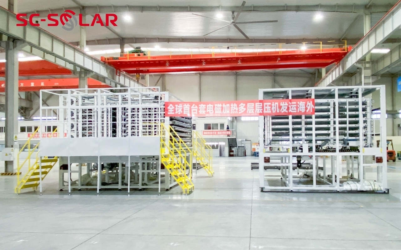 全球首台套电磁加热多层层压机启运出海ST京机子公司晟成光伏自主研发的电磁加热多层