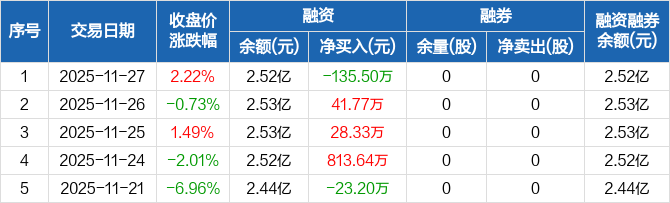 山东海化:融资净偿还135.5万元,融资余额2.52亿元(11-27)