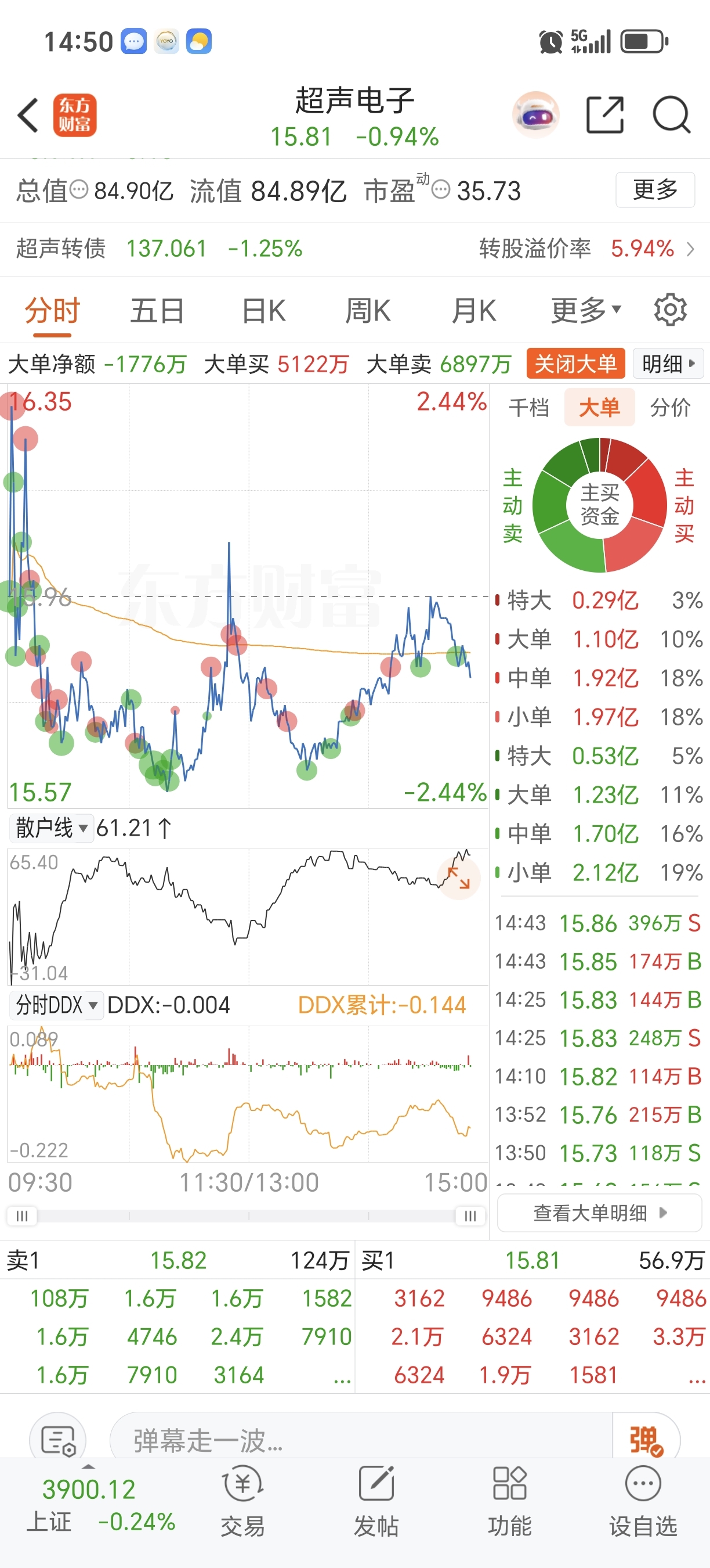 $超声电子(SZ000823)$ 今天也没有昨天的倍量