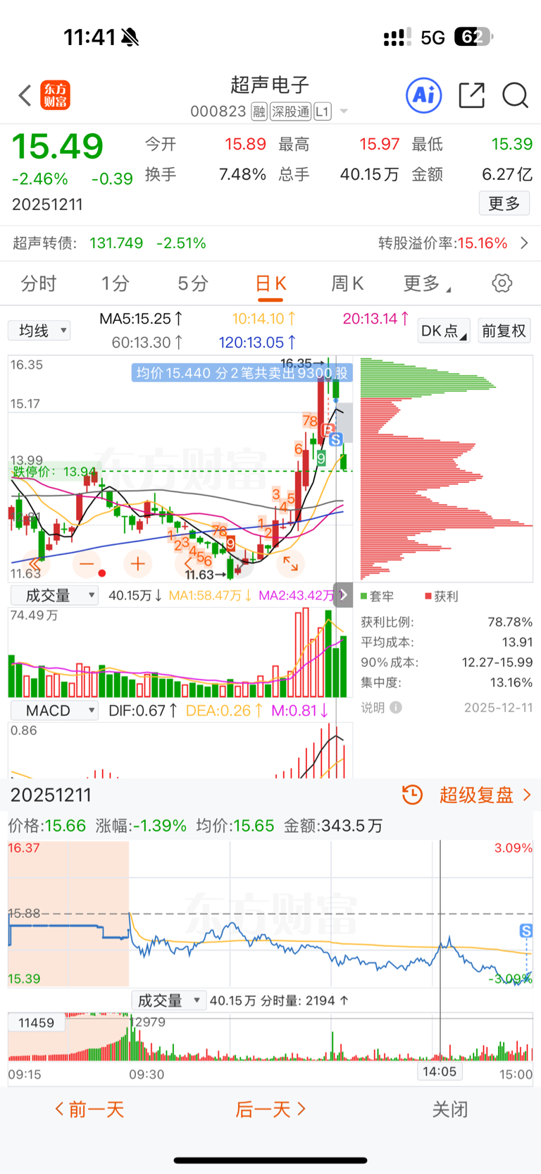 $超声电子(SZ000823)$ 昨天下午14点左右,做多资金开始做多,拉上均线,结果被砸下去,今天它直接反手挂跌停,摊牌了,谁都别好过!