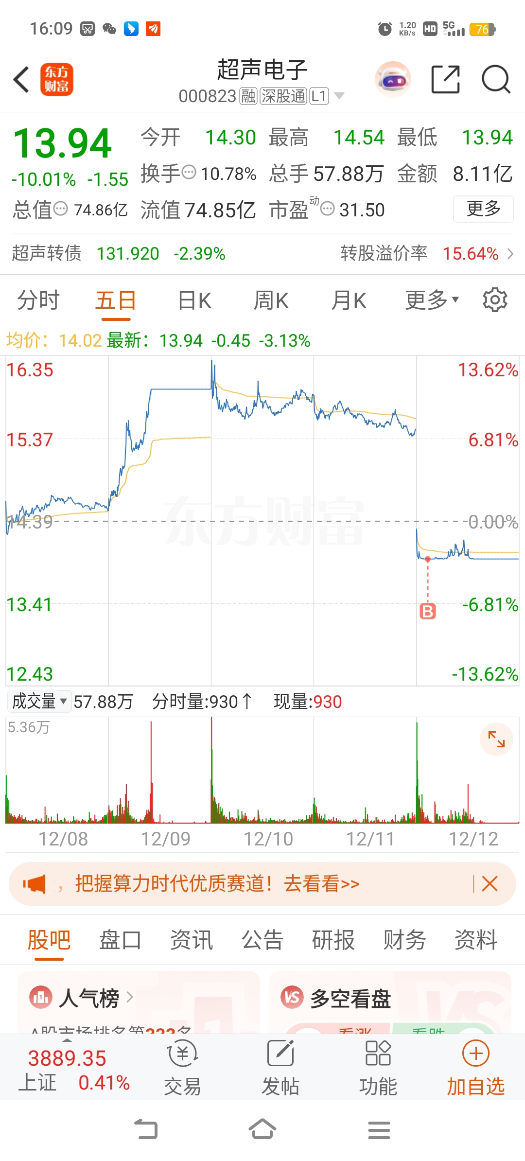 $超声电子(SZ000823)$ 完了完了,听说有至少18个跌停一字板