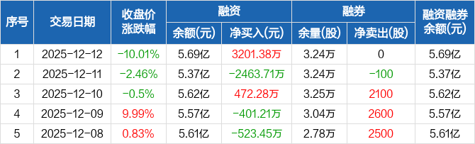 超声电子:融资净买入3201.38万元,融资余额5.69亿元(12-12)