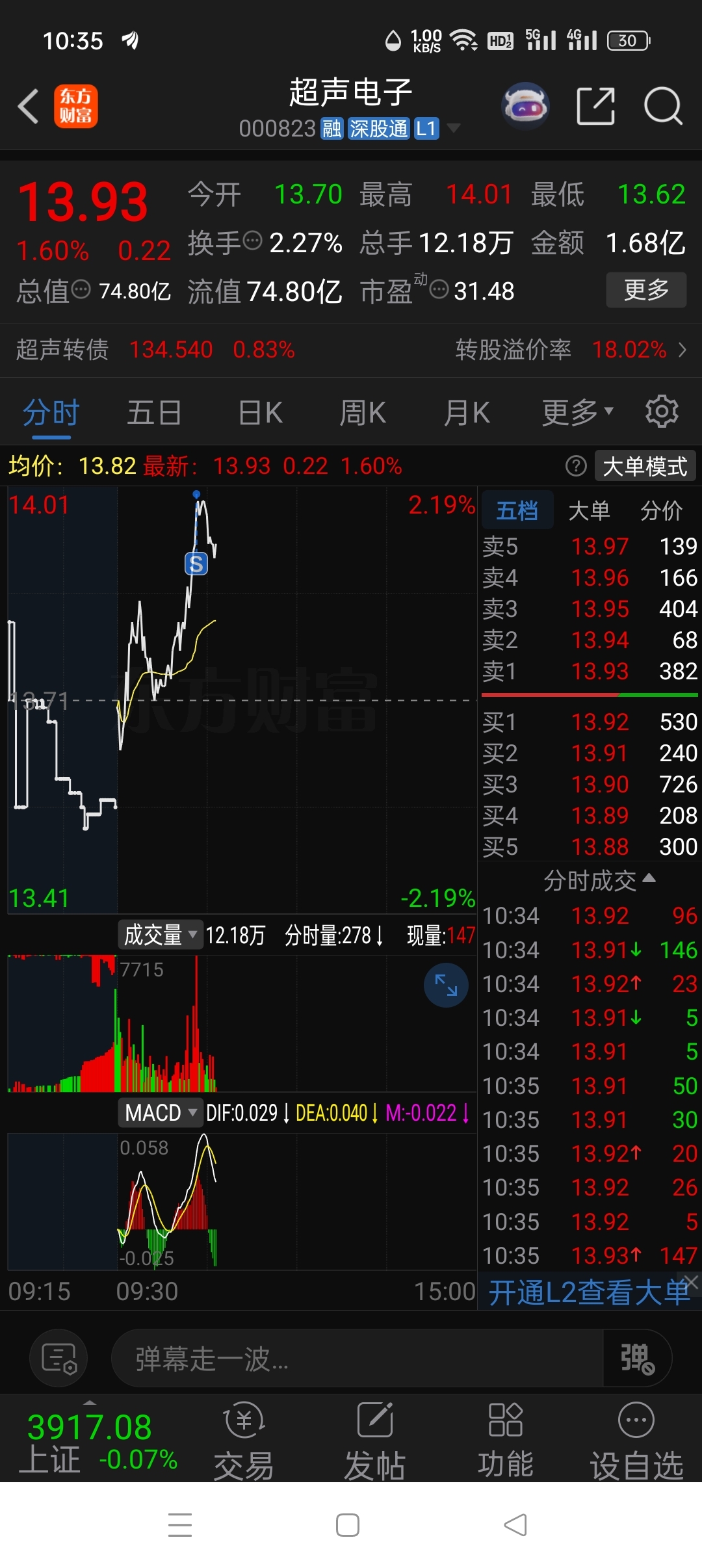 $超声电子(SZ000823)$ 成功逃顶