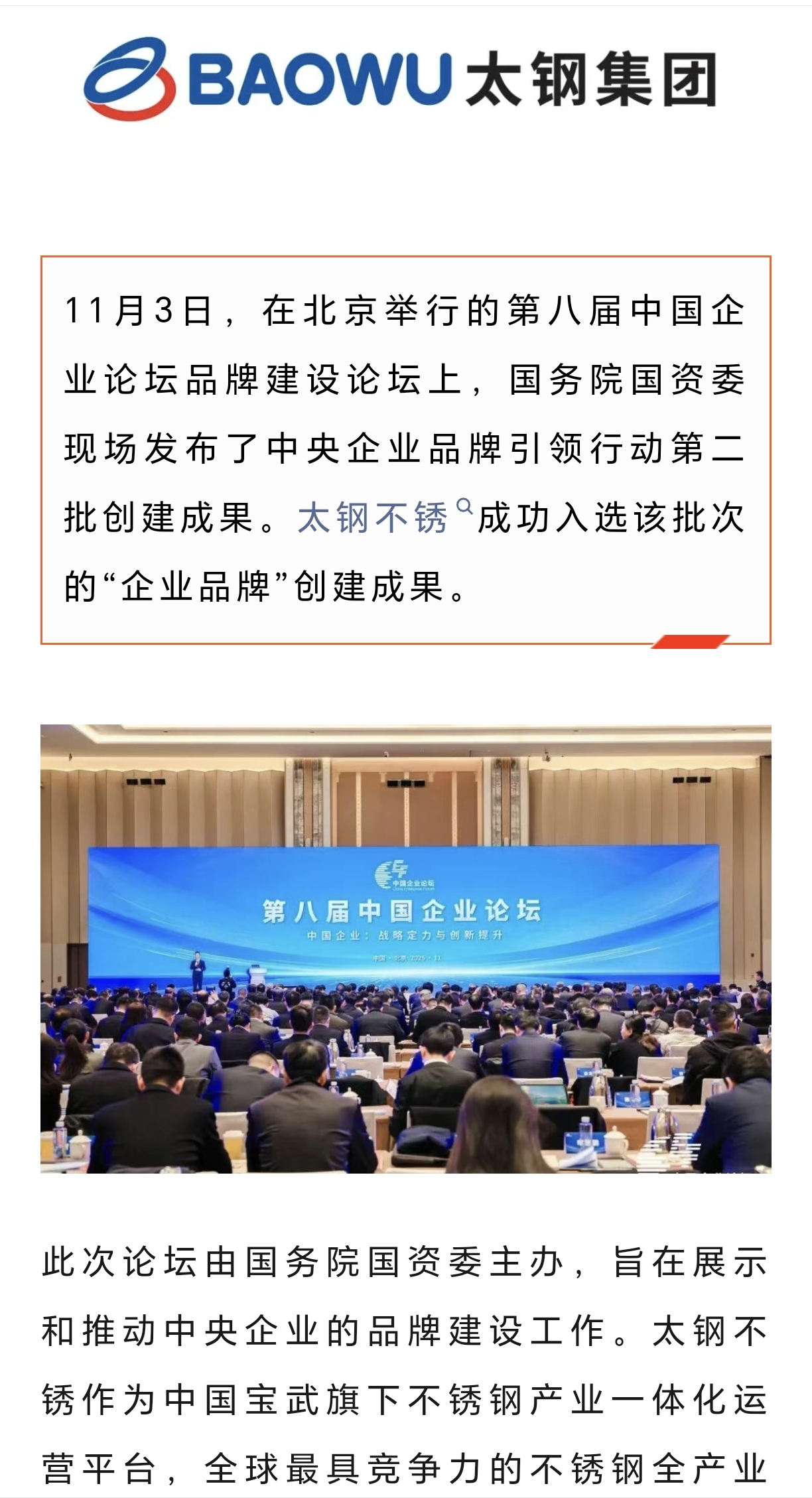 $太钢不锈(SZ000825)$ 太钢入选国家级企业品牌