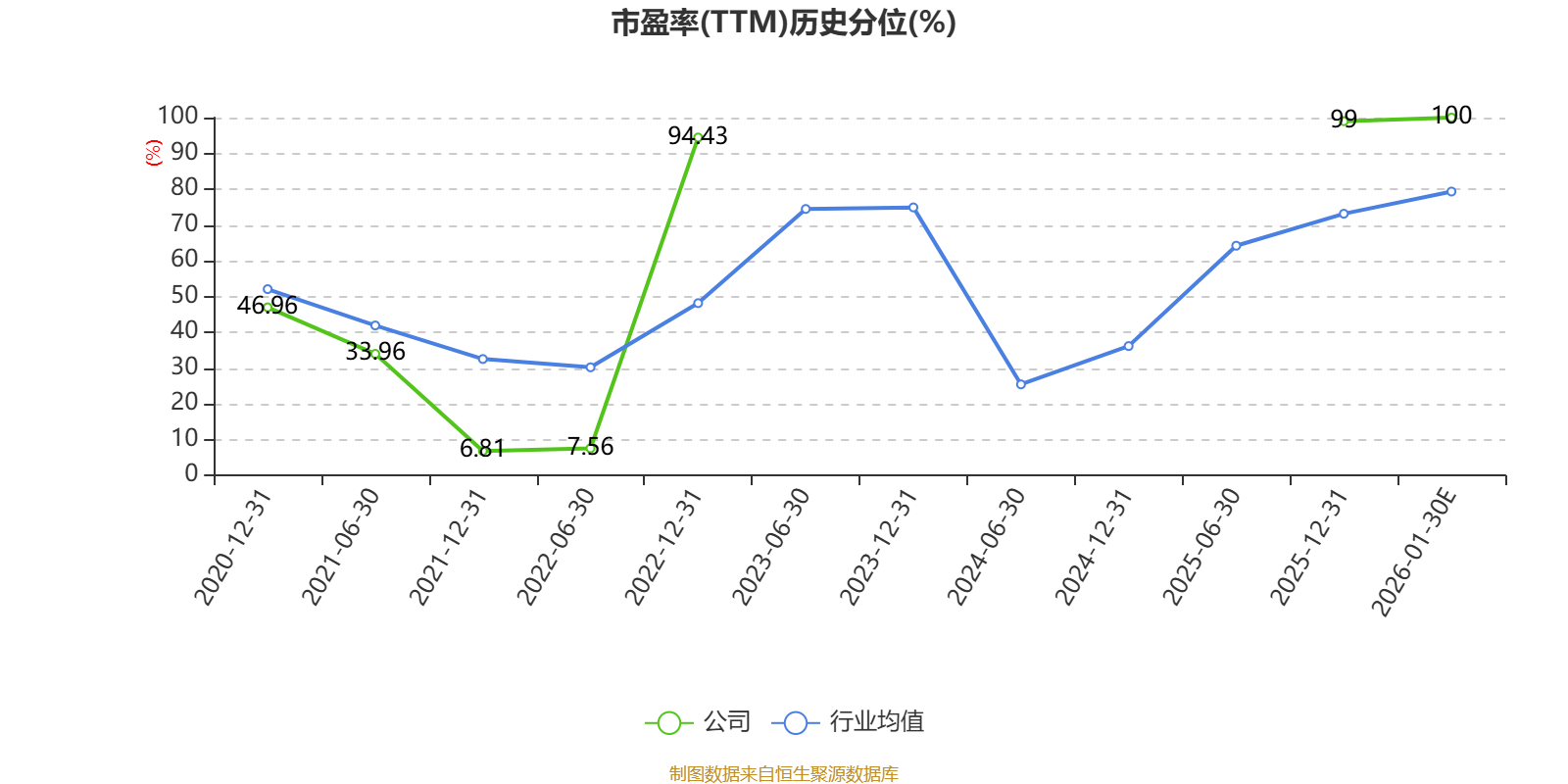 市盈率、市净率为负时,不显示当期分位数,会导致折线图中断。