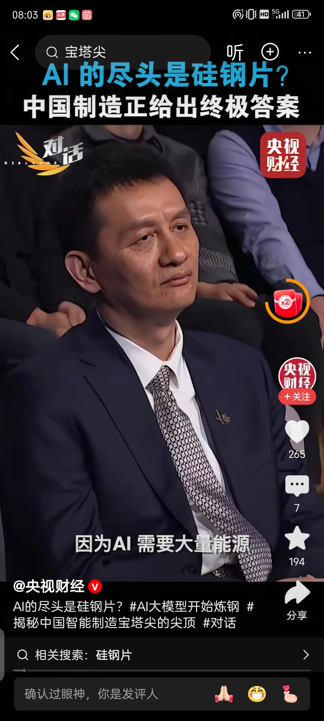 $太钢不锈(SZ000825)$ 央视好久的节目?难道下周真的轮到钢铁起飞了吗,ai的尽头是硅钢,那太钢不锈作为硅钢主要生产厂家,那不得好好表现下
