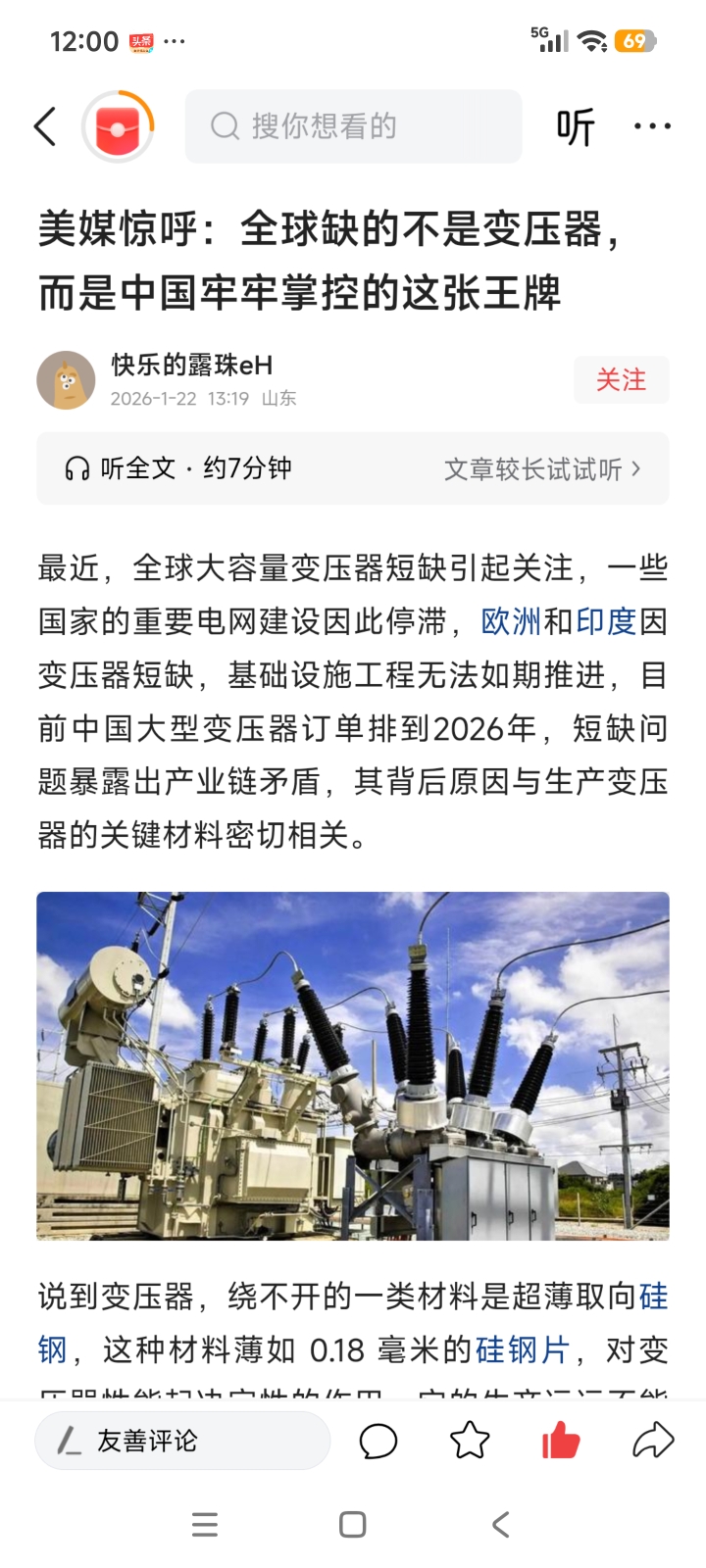 全球缺的不是变压器而是生产变压器的原材料--硅钢,这也制约了美国ai发展,而这正