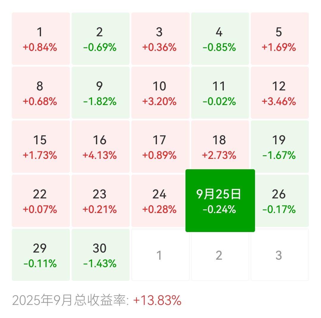 $启迪环境(SZ000826)$ 在股市当中,持续盈利是每个股友终极的目标。最愚蠢最无知的一类人认为是每天盈利才叫持续盈利。其实想要每天都是红的,神都做不到!那么怎样才能做到或者接近于做到持续盈利呢?某位大师给出了终极答案一一那就是经常小亏小赚,偶尔大赚,从不大亏!这样下来在单位时间内,你就可以做到持续盈利。股市中的慢就是快,其实就体现在这里!下面是我9月份的答卷,仅与我的粉丝股友们共勉!不是要求你每个月盈利多少,只要是在盈利的路上,我们都有希望。加油!