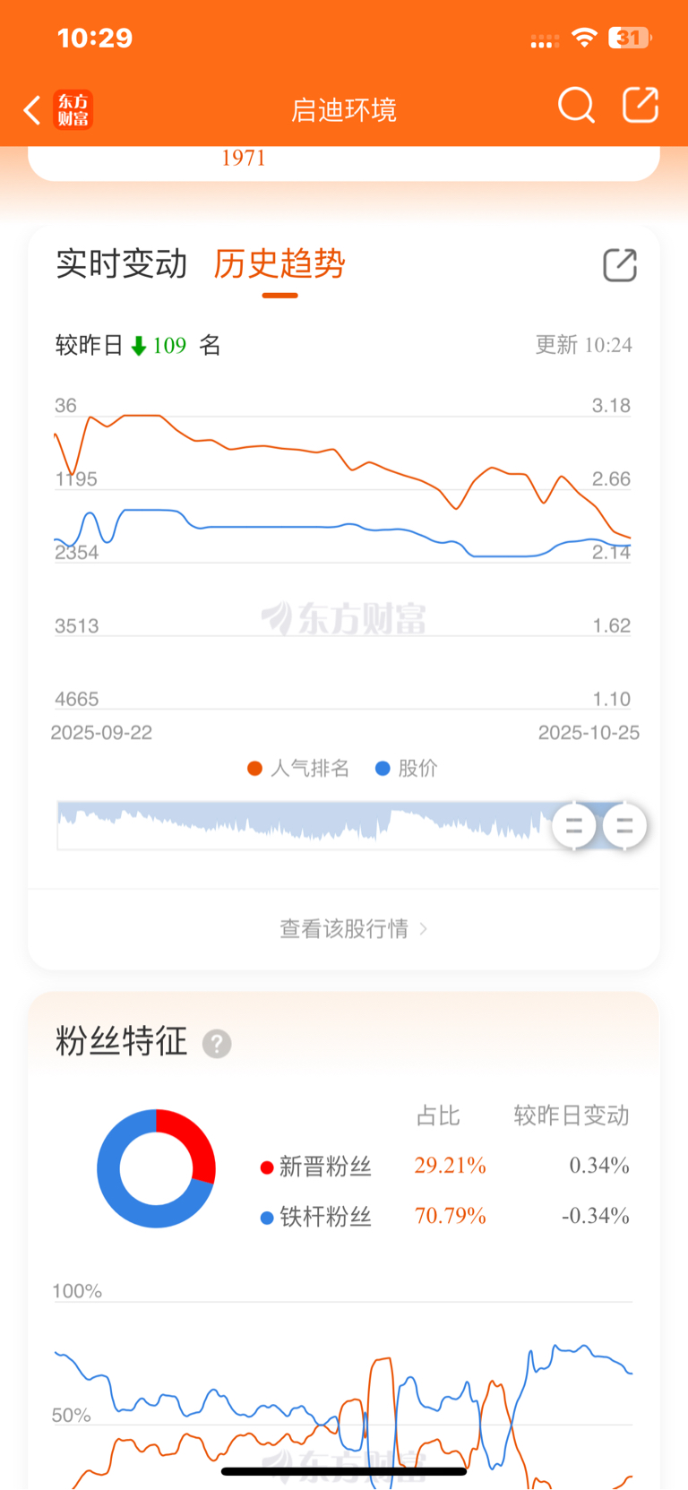 $启迪环境(SZ000826)$ 人气排名连续下降,新粉丝比例上升,老粉丝比例下降,这种背离说明部分老粉丝熬不住离场了。