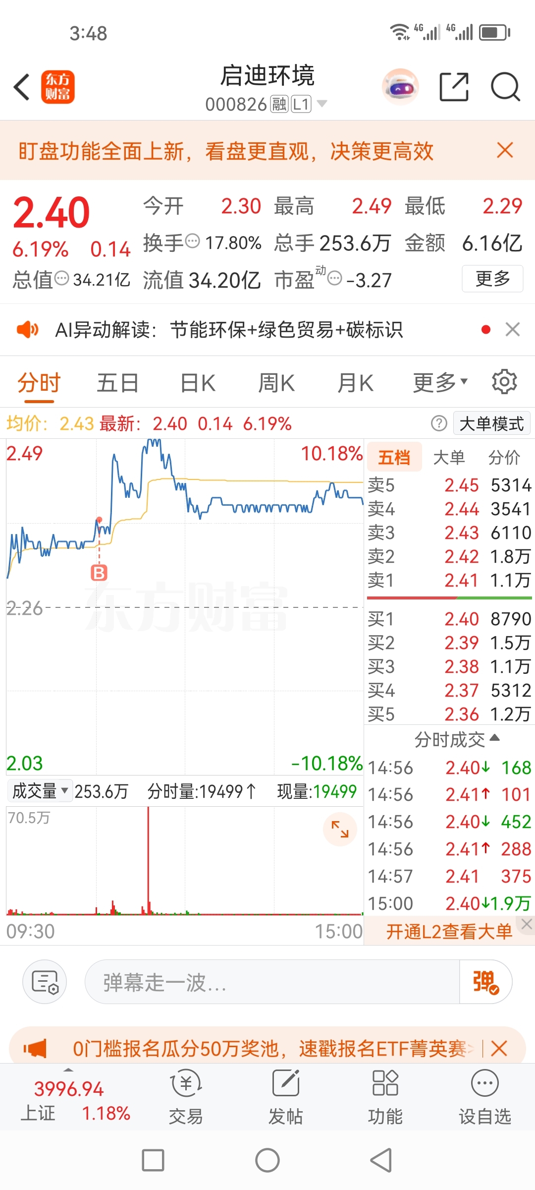 $启迪环境(SZ000826)$ 唉!白高兴一场,明天估计又要亏损出局