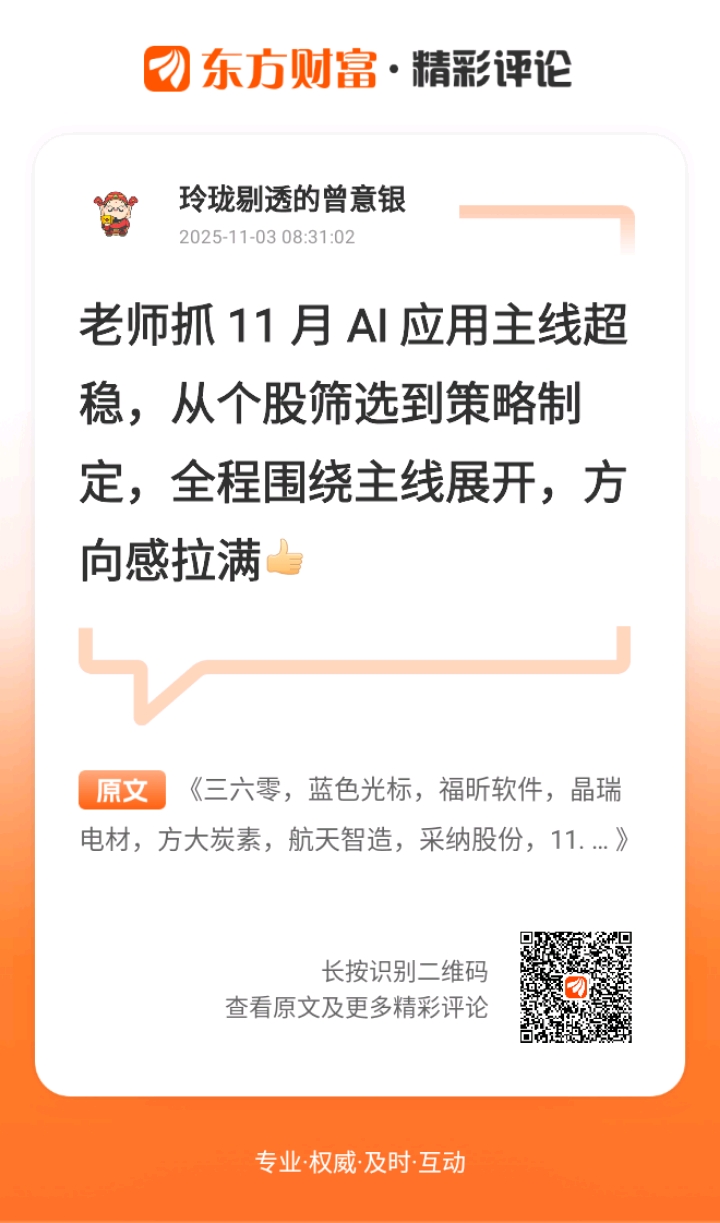 最后想说:我不是股神,就是和你一起复盘、踩坑的搭子。有拿不准的标的或赚钱经验,评论区聊聊;吃到肉也来报喜,咱们 11 月稳稳吃肉!