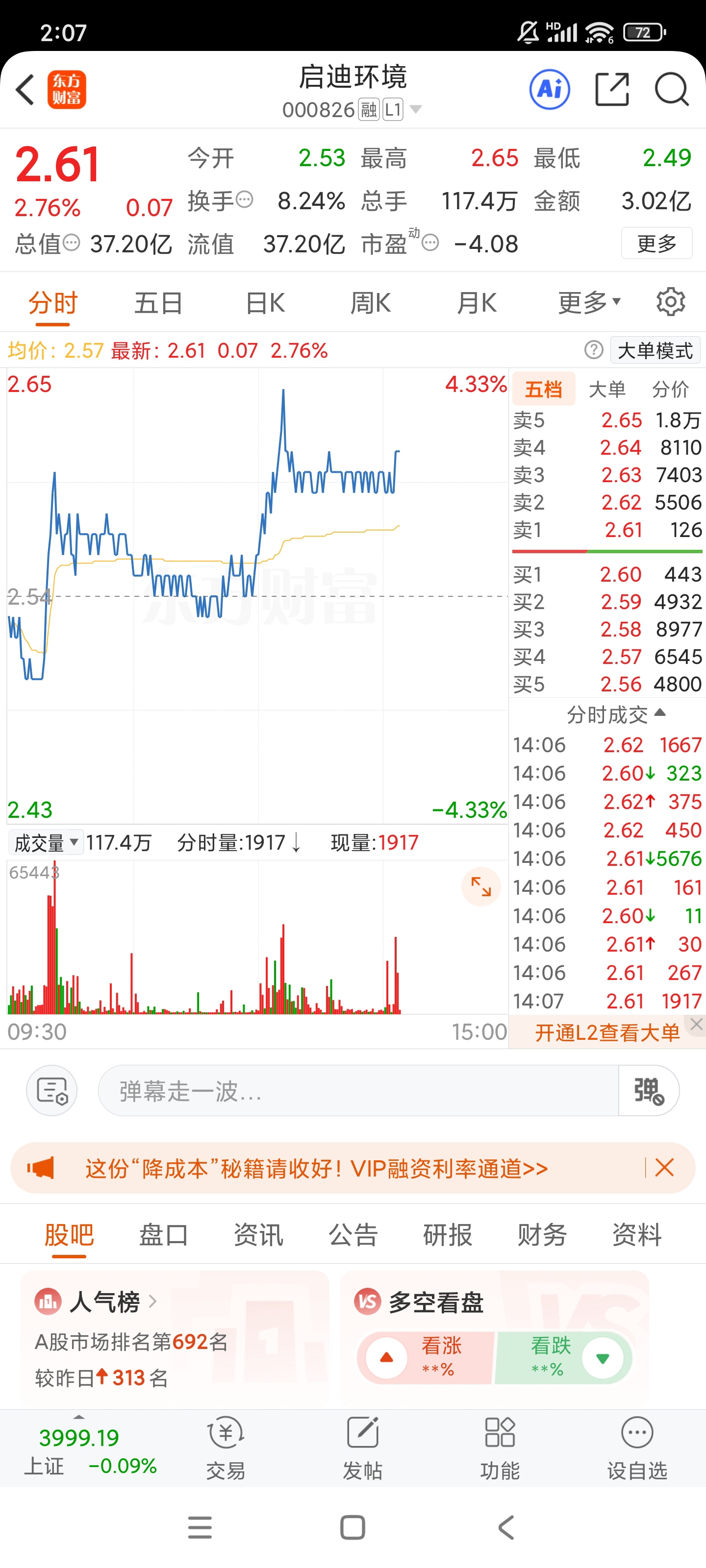 $启迪环境(SZ000826)$ 面临向上突破,2.6元短线有点机会。