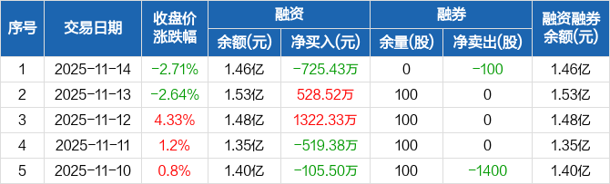 启迪环境:融资净偿还725.43万元,融资余额1.46亿元(11-14)