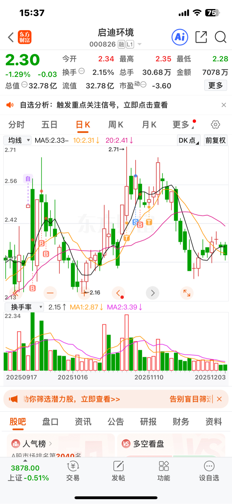 $启迪环境(SZ000826)$ 不到3块一股不卖,除非退市,不然休想洗我下车