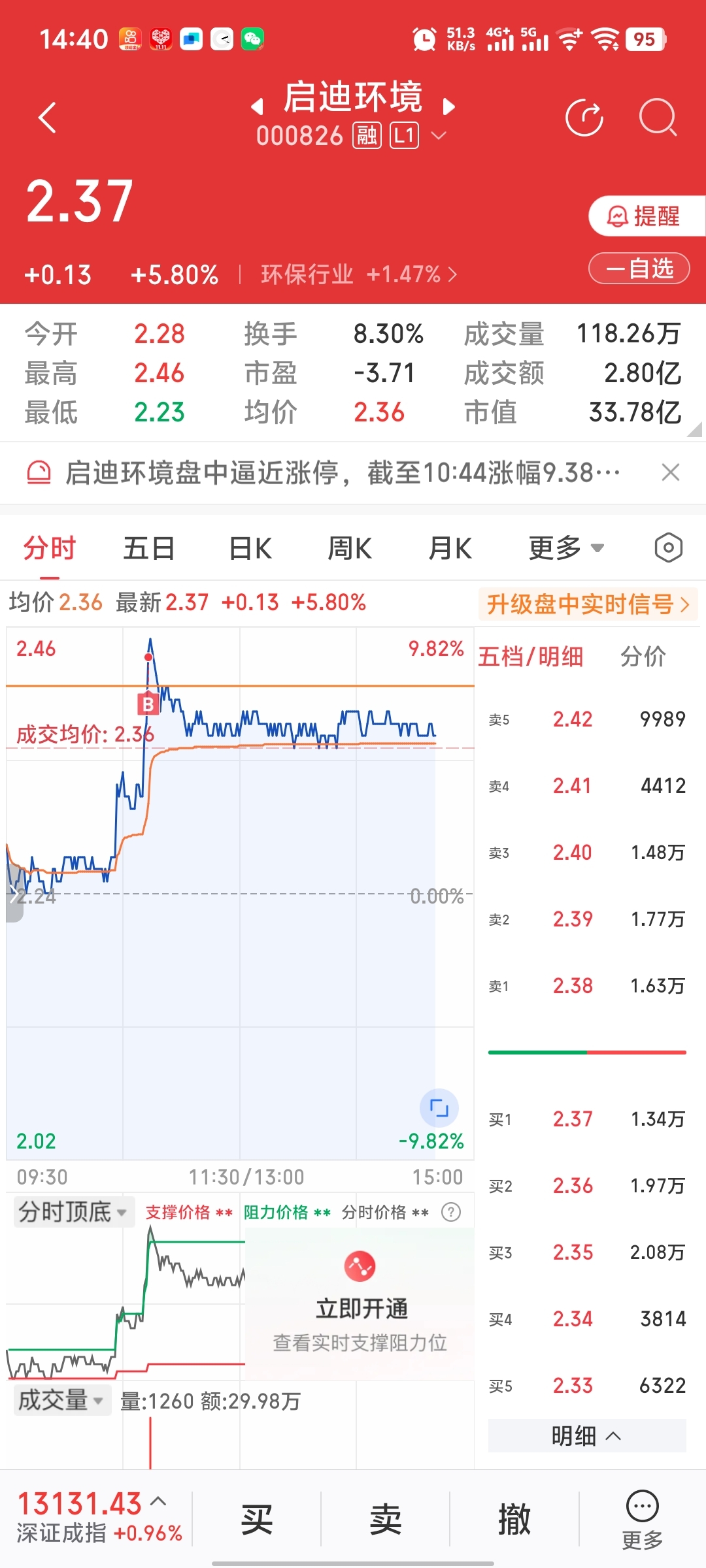 $启迪环境(SZ000826)$ 买在山顶上了,明天竞价绿盘直接割肉,红盘留一留