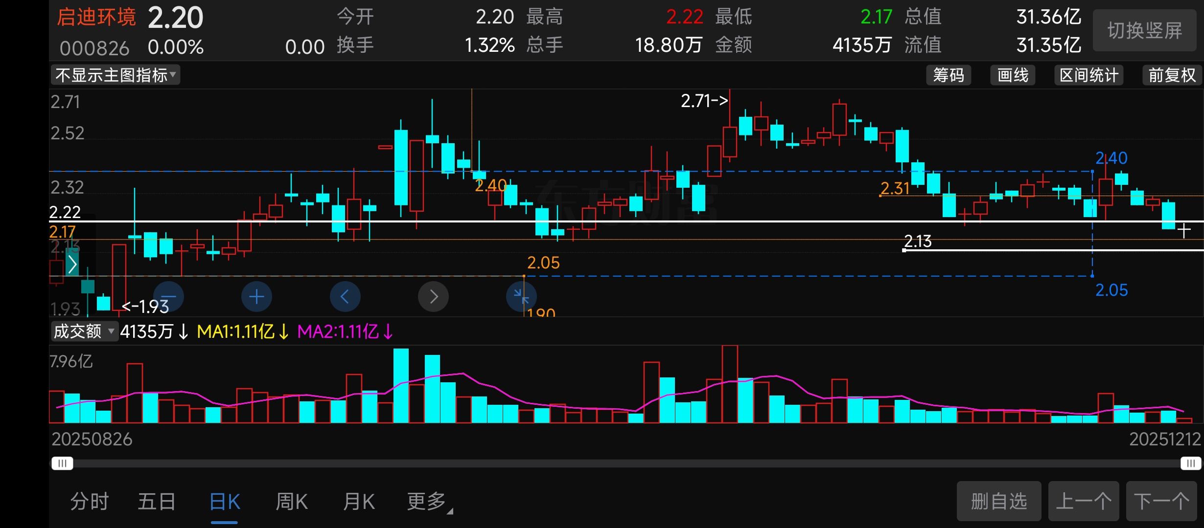 $启迪环境(SZ000826)$ 看这趋势,大概率下周会触碰2.13位置。