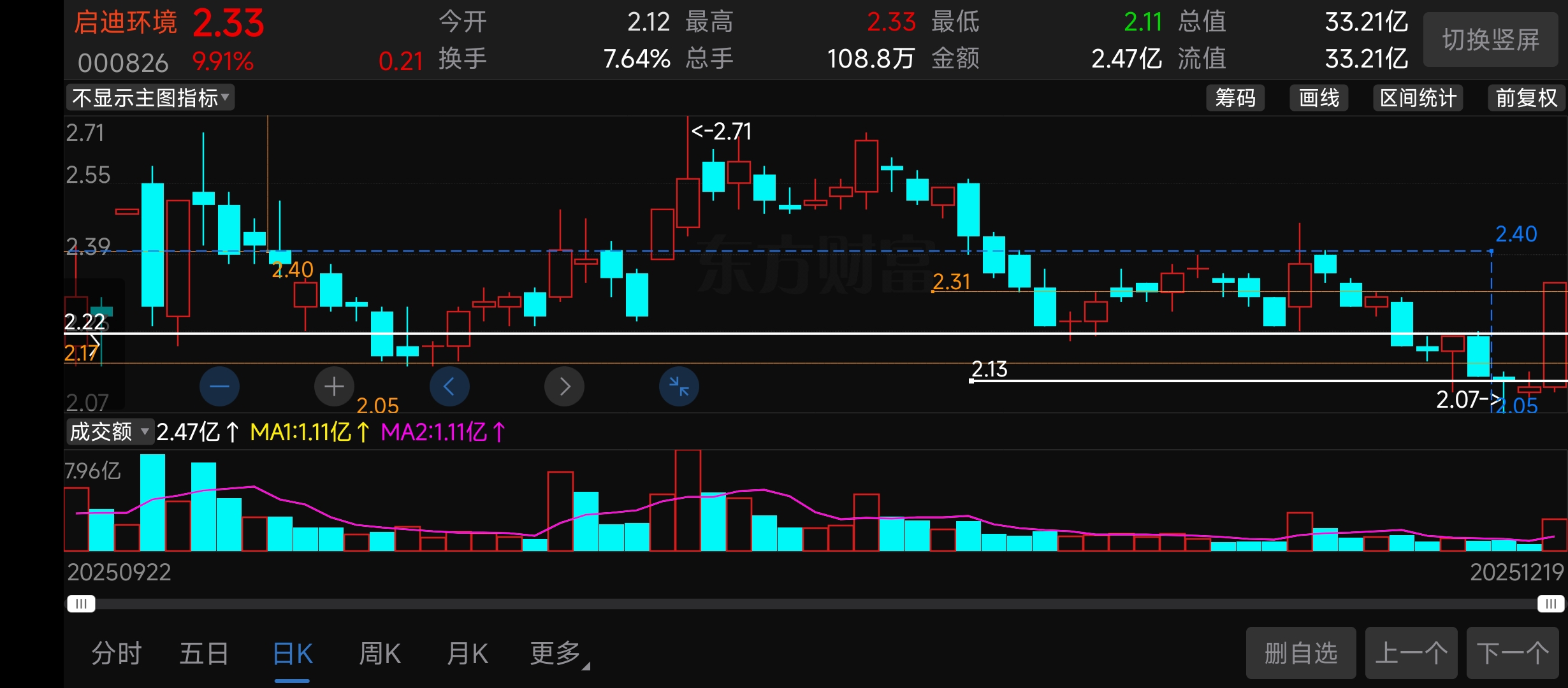 $启迪环境(SZ000826)$ 明天涨停就继续数钱,不能涨停就看2.31位置的支撑,记住一点,盘中跌破和收盘跌破是不一样的概念,所以在收盘没跌破支撑位我会继续持股观望,因为我的成本有让我继续观望的信心。