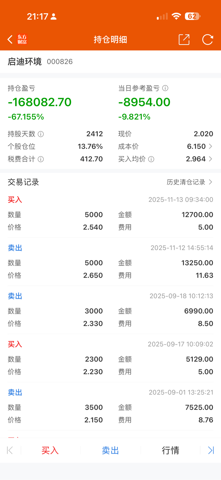 $启迪环境(SZ000826)$ 主力看到应该很爽吧。被套的死死的。祝你下辈子做个人吧